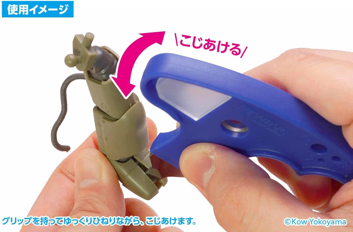 WAVE Hobby Tool 系列 零件・开放式V2 (刀刃宽度:5mm) 塑料模型用工具 HT-220 使用子母扣型塑料模型套件制作时,拆装嵌入零件时最适合的工具。 刀刃采用轻薄设计,便于放入零件之间。 在狭小的部分和深处也能轻松使用,刀刃宽5毫米的细长型。 握柄厚度与以往的一半以下,便于收纳工具箱等。 把手内插入保护盖,有助于防止工作中的丢失。 主体尺寸:约72×82×9(mm) 刀刃宽度:5毫米 配件:刀头用保护盖 ※本产品属于刀具尖锐形状,使用时请充分注意。 本产品为兴趣爱好用工具。 ※本商品以外的(不含粘合剂、涂料、电池等)。