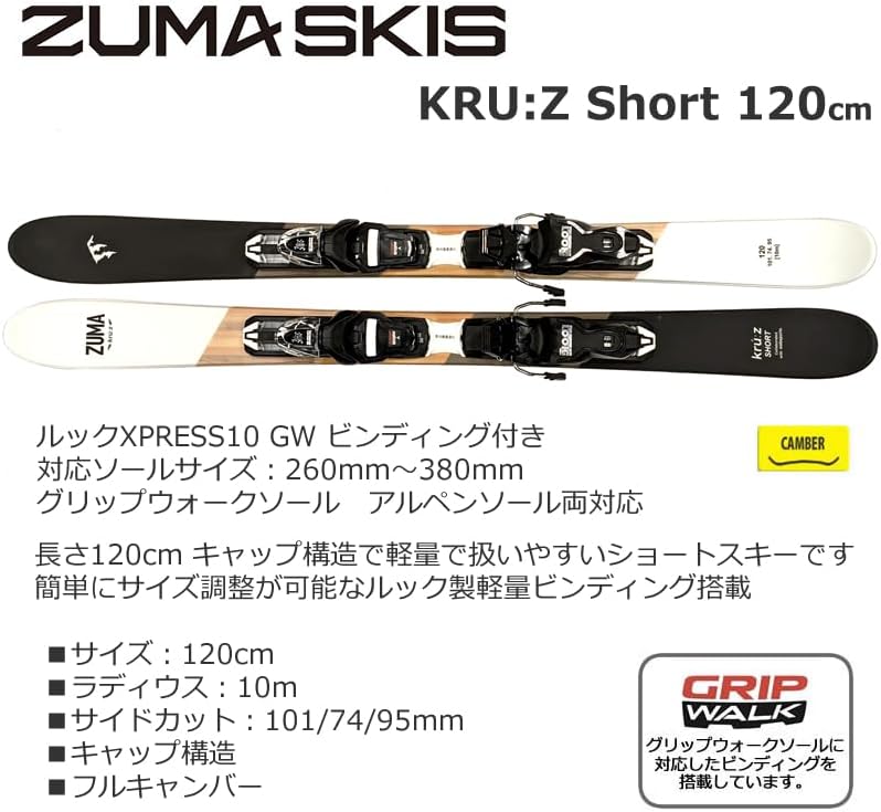 ZUMA(ZUMA) 滑雪正品 WEBSPORTS 限定款 2025 KRU:Z short 120cm (船) Freezy品牌ZUMA SKIS 的舒适款式,120厘米尺寸的滑雪。 被称为短款滑雪的尺寸。 既短又具有高刻度的雕刻性能,也可以享受自由的滑雪的乐趣。 另一方面,采用螺旋形设计,所以可以尽情享受开关滑行和攀爬等。 此型号为 Luck 的 XPRESS10 GW 解放式固定固定器。 操作手柄,可快速调节尺寸。 ※可轻松调节靴子的鞋底长260mm-380mm的款式。 此外,也适用于GRIPWALK鞋底的靴子。 SIDECUT 120cm:101-74-95mm (R 10m) CAP结构 ・搭载接口:LOOK XPRESS10 GW ・该商品在组装起来的状态下发货。 未调整尺寸、解放值。 使用前请务必在滑雪专卖店或租赁店进行调整。 ZUMA ski 2025,zuma ski 24-25模型,zuma ski japan,ZUMA 24-25,swallow 24-25,施华洛世奇 24-25,SWALLOW 滑雪, 【日本正规商品。 在邮购的情况下也可接受制造商的正规保修,请放心。 】
