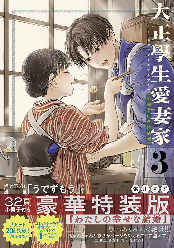 【描き下ろし漫画収録!豪華32ページ小冊子付き特装版!】 六年ぶりの再会を経て結婚した勇吾とふきは、お互いの気持ちを伝えあい、ついに一夜を共に過ごす。 そんな日々の中、さらりと英国の少女と英語で話すふきに、勇吾は思わず目を見張りーー? 知らなかった一面に触れるたび、ますます愛しさが募っていく。大正夫婦の新婚譚、第三巻! 小冊子には完全描き下ろし漫画「うでずもう」や単行本未収録の番外編収録!大ボリューム特装版!!