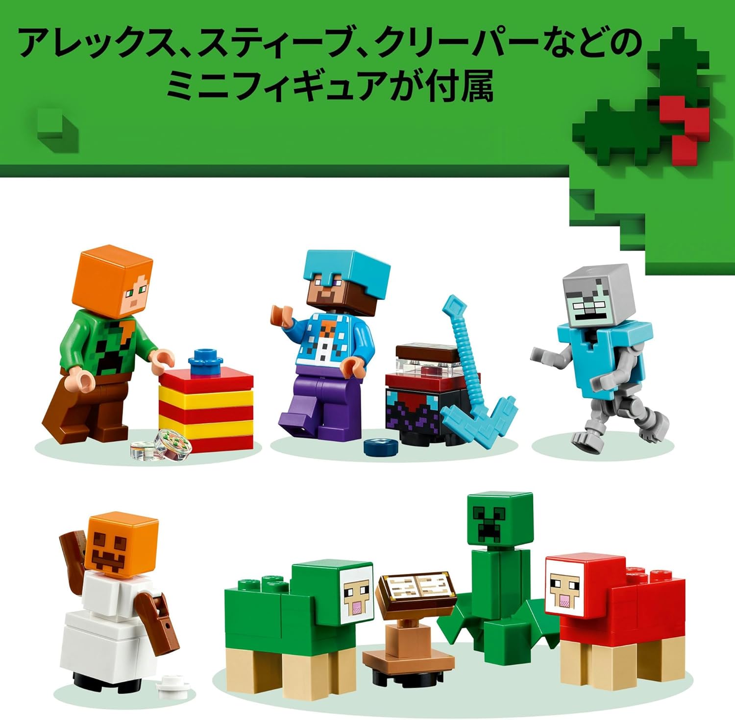 "LEGO 乐高 我的世界历2025(21280)是圣诞节的24日组装模型、迷你手办、视频游戏相关的收藏品,每天收到收到收到愉快的礼物。 (适用年龄:7岁以上) 每天都是我的圣诞节的倒计时,每天用我的工艺风格来庆祝吧。 穿着Creper毛衣的Alex 穿着雪人毛衣,戴着钻石头盔,拿着光滑的筷子。 Sweet Berry的低树横立式清洁器。 拥有Trident Trending。 穿着钻石防具的碎片。 拥有坚实的斧头僵尸。 圣节姿态的村人加门。 此外,雪之魂的迷你手办登场。 此外,还附带了在游戏中出现的道具组装玩具和配件。 在每天打开车门,在圣诞节当天都能制作Minecraft的冬季弹道,创作出原创故事,并附有玩耍时的游戏垫。 "