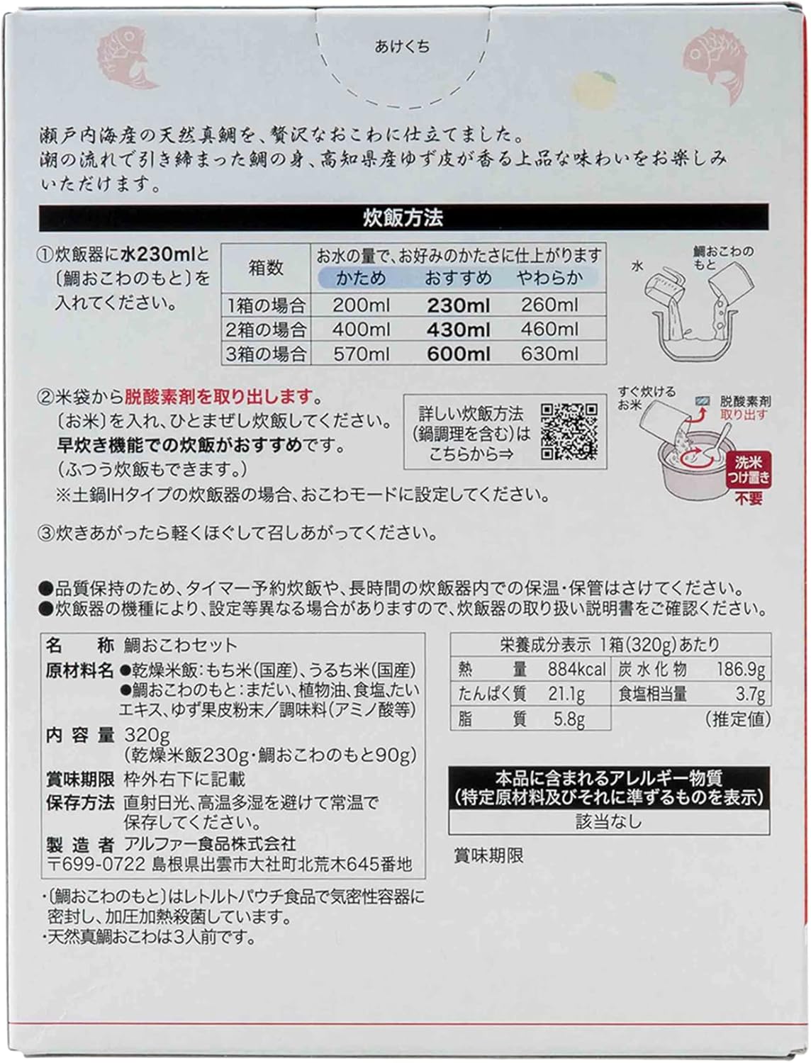 100%国产大米通过本公司独有的技术加工而成的"即刻烹饪的大米"。 这是一款只需使用家庭的电饭煲,就能在短时间内享受愉快的米饭和食材套装。 (约3双烹调量) 使用濑户内海产的天然金鲷、高知县产的柚子皮。 将鲷鱼的身躯做成了鱼肉的优雅口感。 可作为日常餐桌或稍微奢侈的日子,作为礼品或小礼物也很受欢迎。 从出云中怀着无穷的想法。