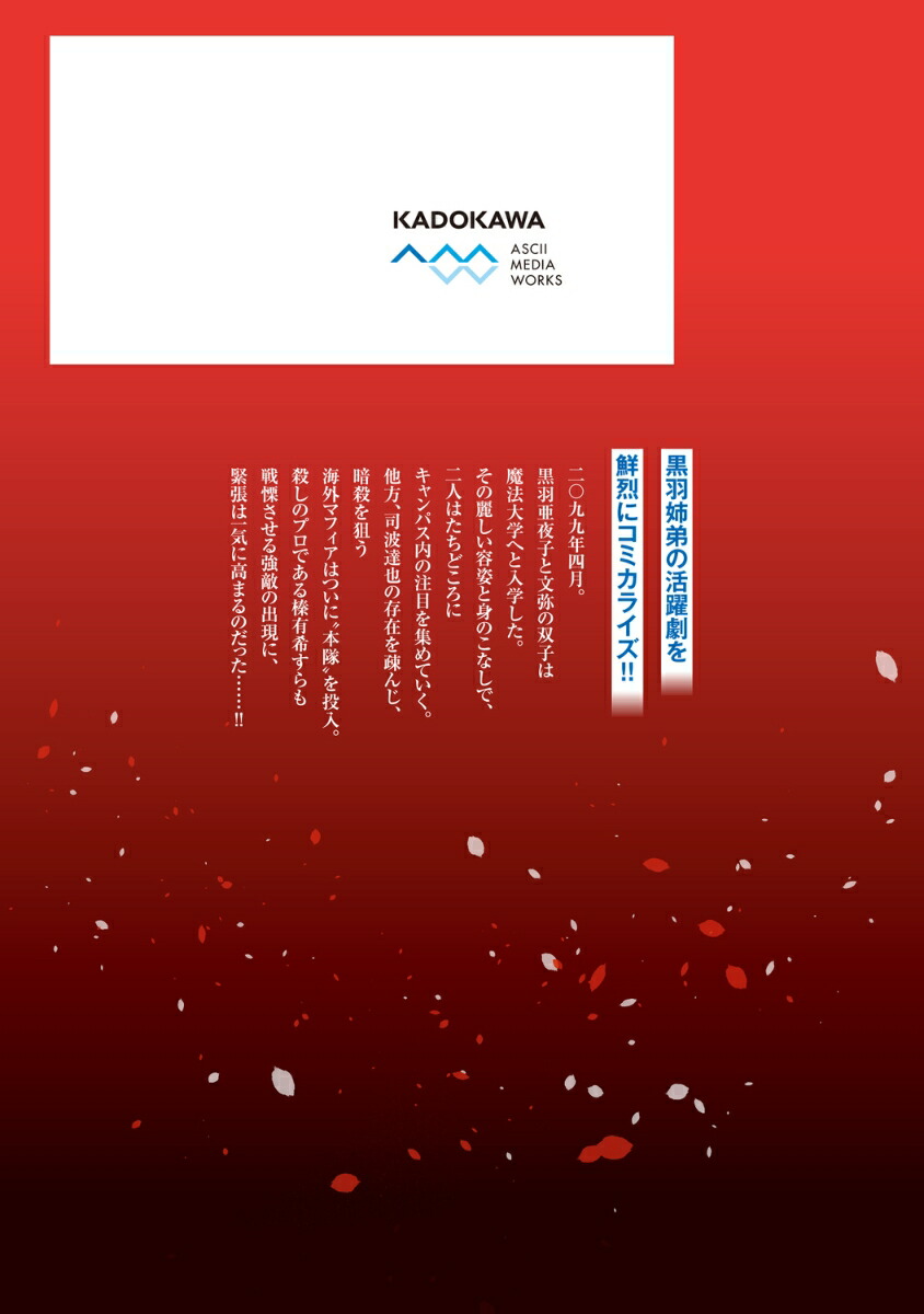 二〇九九年四月。黒羽亜夜子と文弥の双子は魔法大学へと入学した。その麗しい容姿と身のこなしで、二人はたちどころにキャンパス内の注目を集めていく。他方、司波達也の存在を疎んじ、暗殺を狙う海外マフィアはついに“本隊”を投入。殺しのプロである榛有希すらも戦慄させる強敵の出現に、緊張は一気に高まるのだった……!!