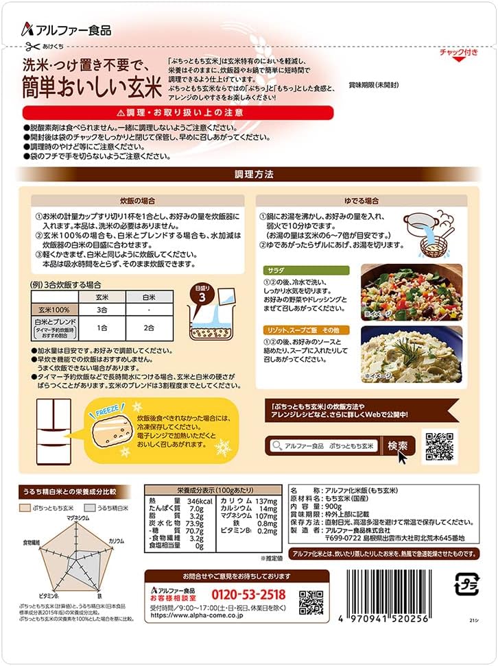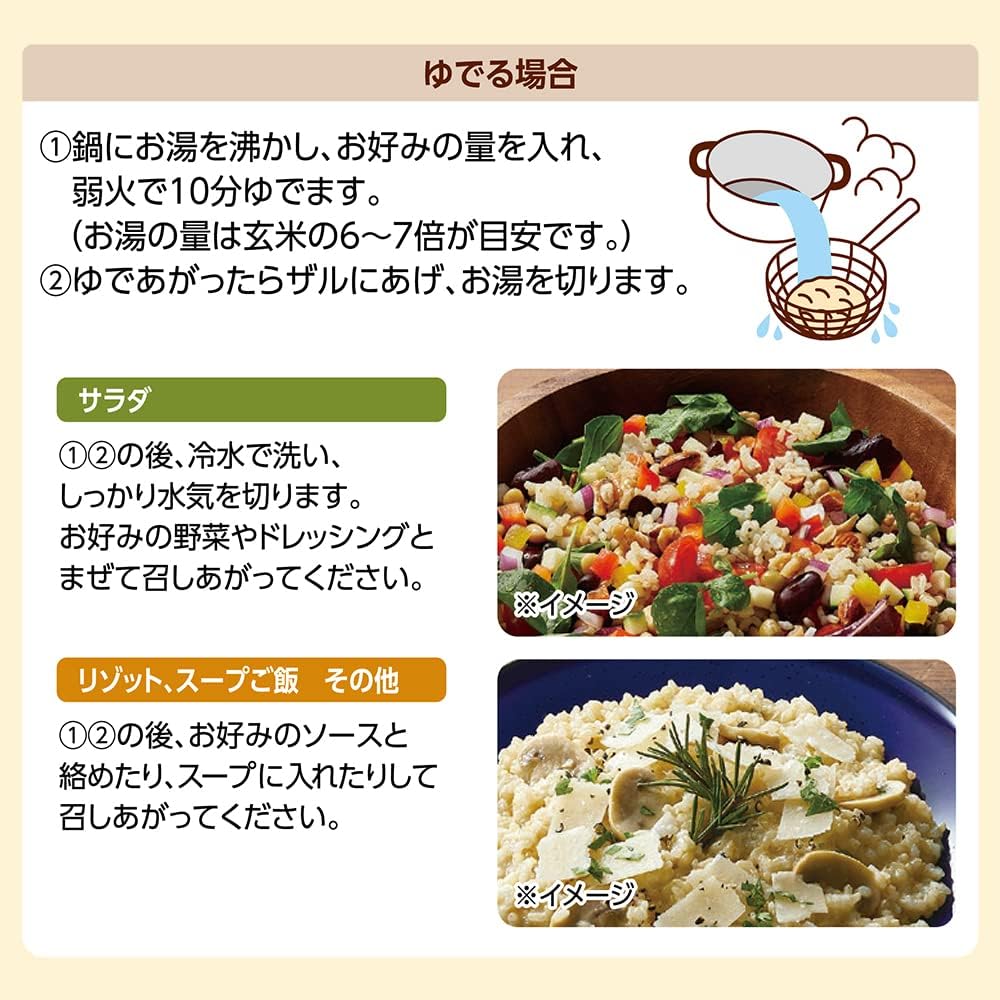软糯糙米可减轻糙米特有的气味,维持营养,用电饭锅或锅轻松短时间内烹饪。 无需浸泡洗涤米和浸泡。 不仅可以用作糙米米饭,还可以用于煮沙拉和汤。 请享受小巧糯糙米独有的"小米"和"糯"的口感,以及易于搭配。 NPO法人蔬菜项目日本认证,维根认证商品。