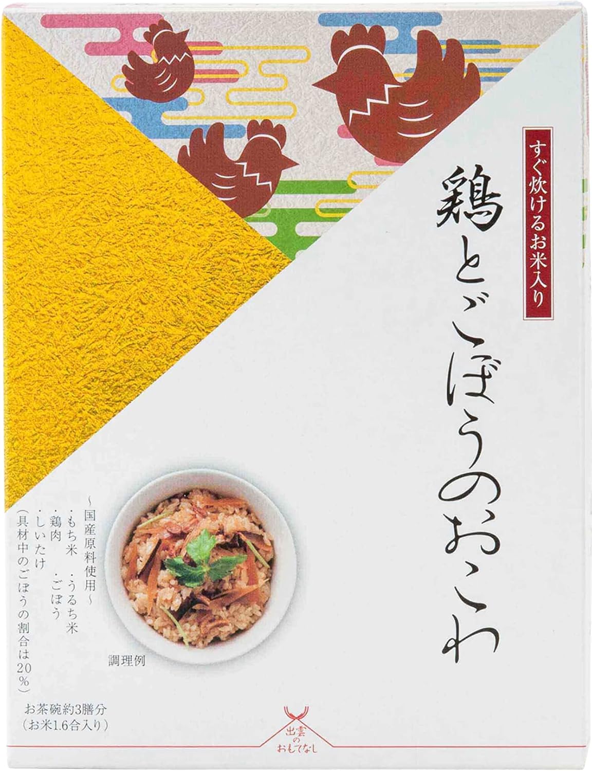 100%国产大米通过本公司独有的技术加工而成的"即刻烹饪的大米"。 这是一款只需使用家庭的电饭煲,就能在短时间内享受愉快的米饭和食材套装。 (约3双烹调量) 使用日本产鸡腿肉、牛蒡。 采用烧津产鲣鱼和利尻昆布的组合出汁、出云的正宗酱油,风味丰富。 可作为日常餐桌或稍微奢侈的日子,作为礼品或小礼物也很受欢迎。 从出云中怀着无穷的想法。