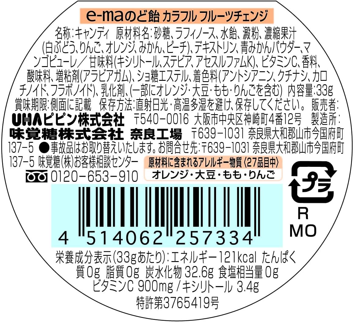UHA味觉糖 e-ma喉糖容器 彩虹水果变色 33克×6个