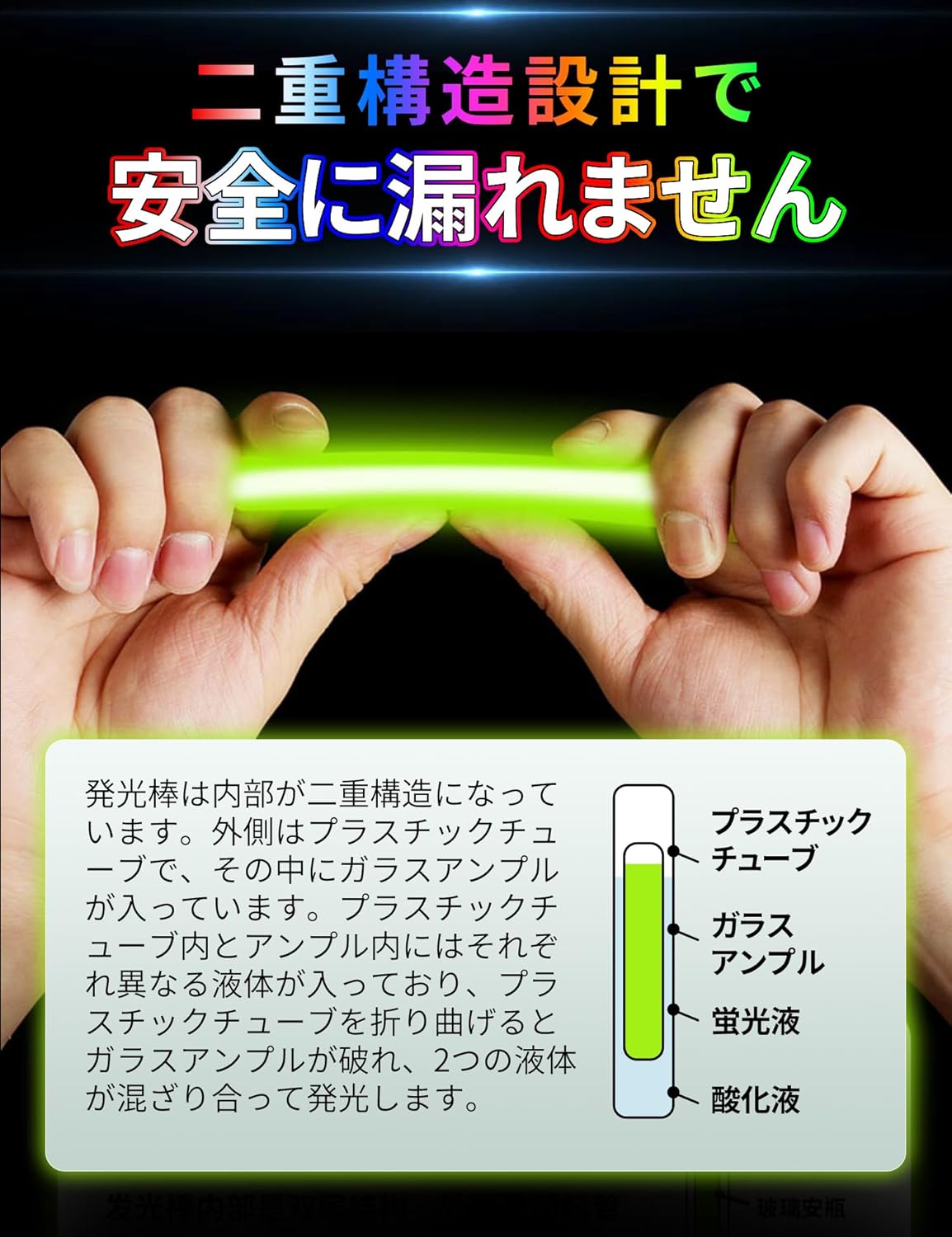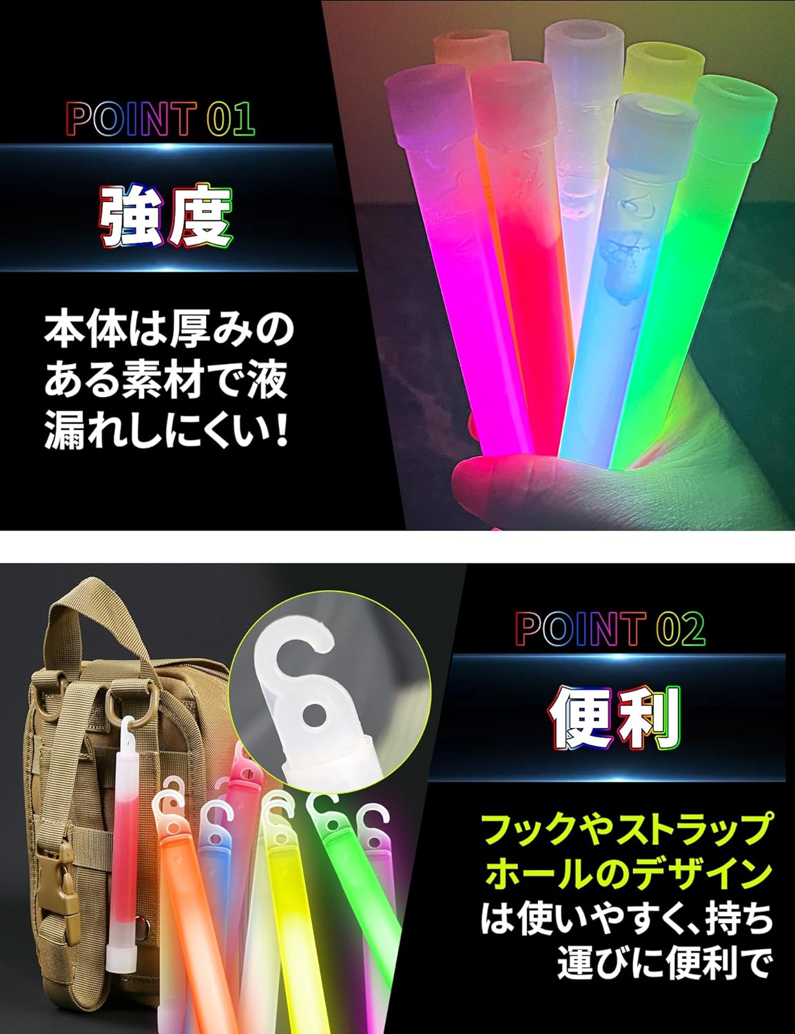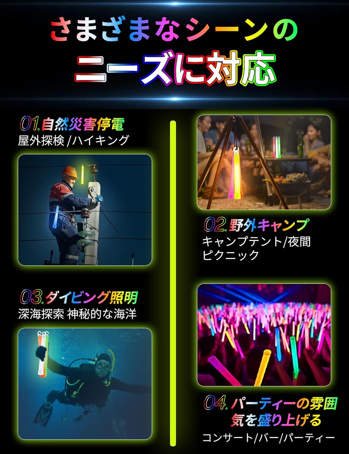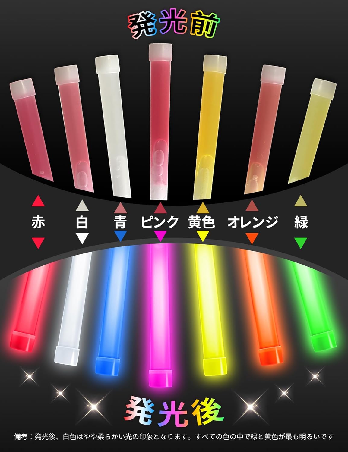 产品组合和色彩变化 这款荧光灯套装内含 20 个,提供丰富的颜色变化。 有混合色和单色系列,可以在聚会、户外活动、紧急时刻等各种场合选择。