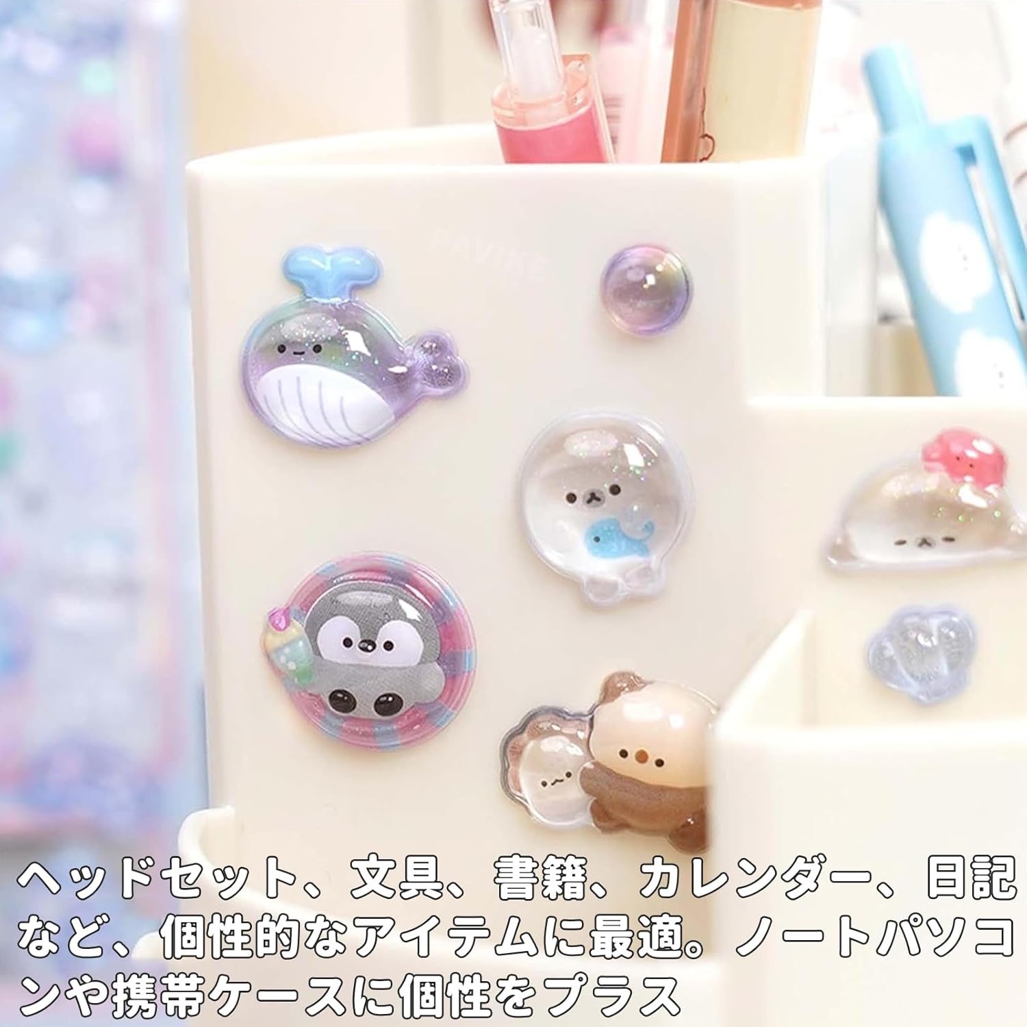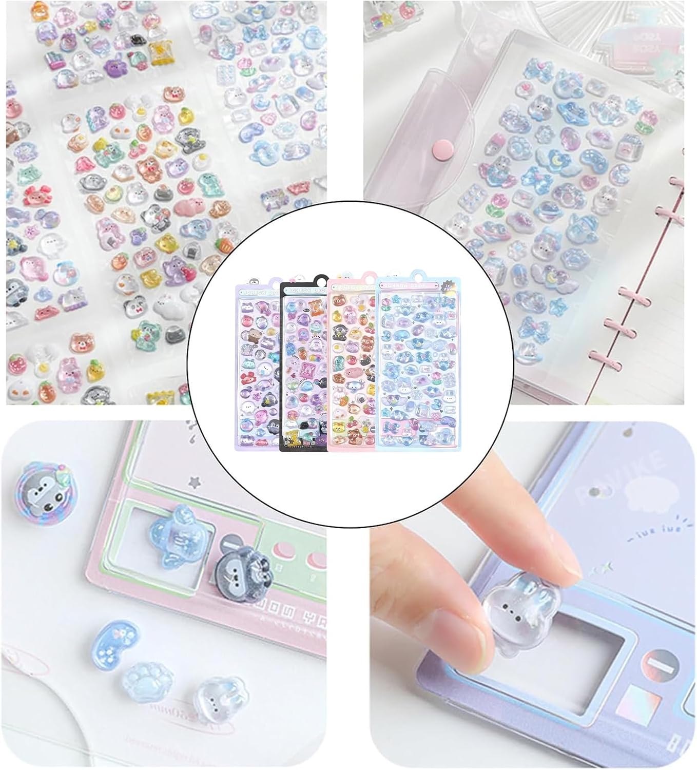 设计:使用高品质的环氧树脂材料制作而成,表现出具有独特的透明感和立体感的透明水滴效果。 贴纸不仅看起来更加鲜艳可爱,还能给DIY作品增添趣味和乐趣。