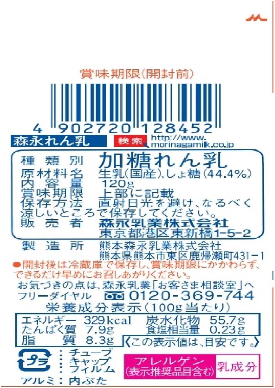 森永乳業 管状炼乳 120g×4个