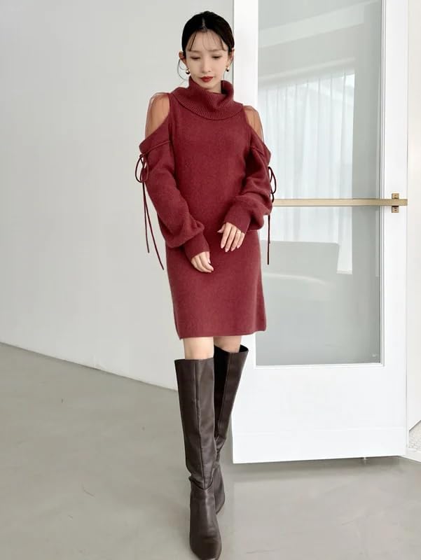 【透明肩部为灯芯绒的人气迷你针织连衣裙】 [Design/Styling] 经典人气的透明肩部迷你针织连衣裙 , 本季也引人注目。 大胆的肩部剪裁加上奢华的针织蝴蝶结,尽显女人味。 从剪裁部分可以看到的欧根纱的细腻透明感,提升女性魅力。 本次采用了清爽的I字形轮廓,宽松的高领设计,非常漂亮。 推荐搭配长靴的造型。 [面料] 有象牙色、灰色、波尔多3种颜色。 使用有起毛感的柔软针织面料,蓬松。 透明感:无 里料:无 弹性:有 光泽感;无 面料厚度:普通 【推荐骨骼型】 ■骨骼波浪 ■骨骼自然