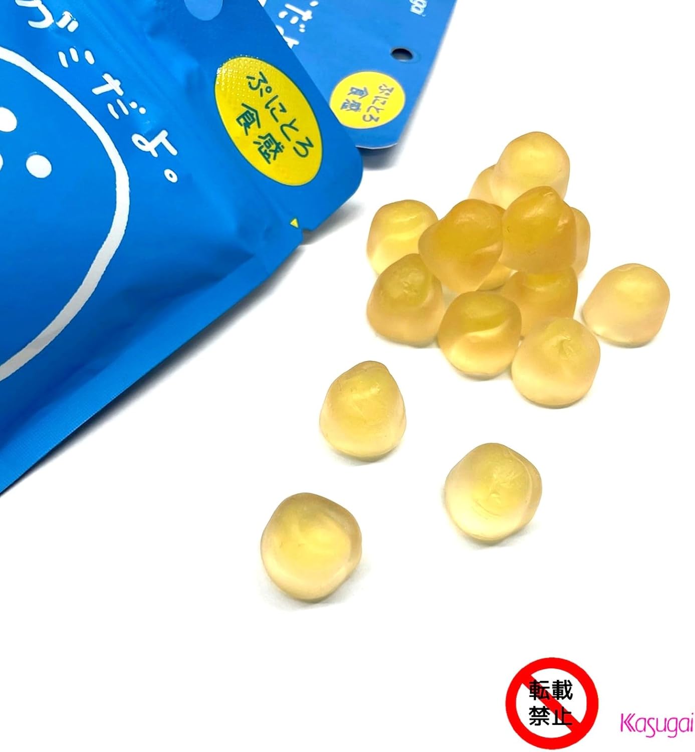 糖稀、砂糖、明胶、葡萄糖/酸味剂、糊剂(果胶、加工淀粉)、山梨糖醇、香料、光泽剂、着色剂(胡萝卜素、姜黄汁)、姜汁)、(部分含有明胶)