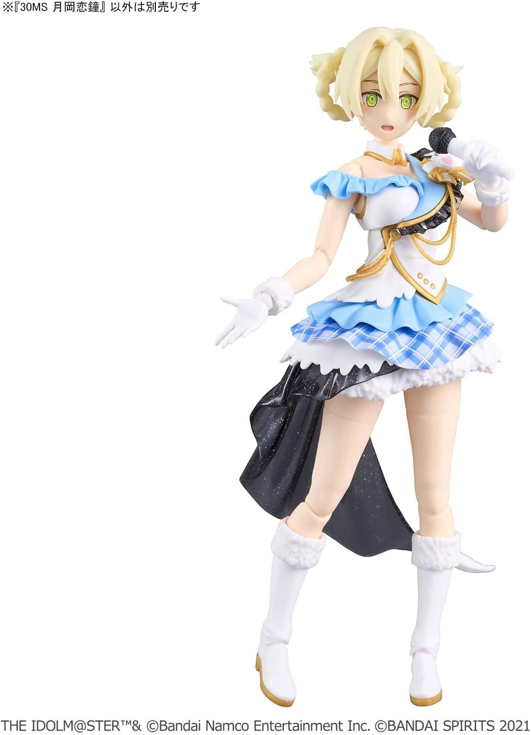 偶像大师 闪亮色彩 复古的"月冈恋钟 30MS格式立体化! 包含全身零件的全效合一产品。 ■表情部件附带凹印3种。 通过零件分割来再现口中的颜色。 刘海可通过更换零件,重现没有发饰的状态。 ■服装中的胸部零件是追求极限的零件构成,只需组装就能再现色彩区分和精密的细节。 通过零件形状再现了背部的小羽毛。 ■胸前的心形是塑料贴纸,表现出清晰的质感。 ■裙子通过印刷图案的薄纸表现了波浪形状。 部分零件采用含金银线的烟灰色材料。 ■肌肤部件在完成时,在模具表面进行了哑光处理,演绎出柔和光线的演出。 ■除了附带表情的手部零件之外,还附带了3种手部配件。 ■附属品 ■面部部件(凹印)×3种 ■手部零件×1式 ■刘海部件(无发饰)×1 ■麦克风×1 ■贴纸×1