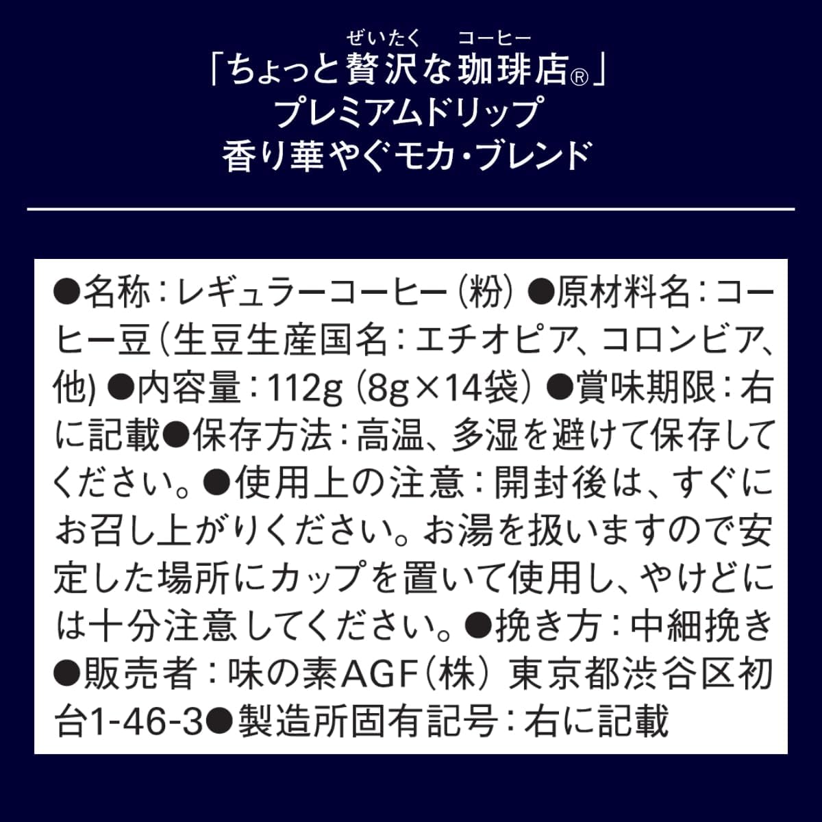 AGF 稍奢侈的咖啡店 普通咖啡 高级滴漏 香味华贵的摩卡混合 14袋 【 滴滤咖啡 】 (× 2)