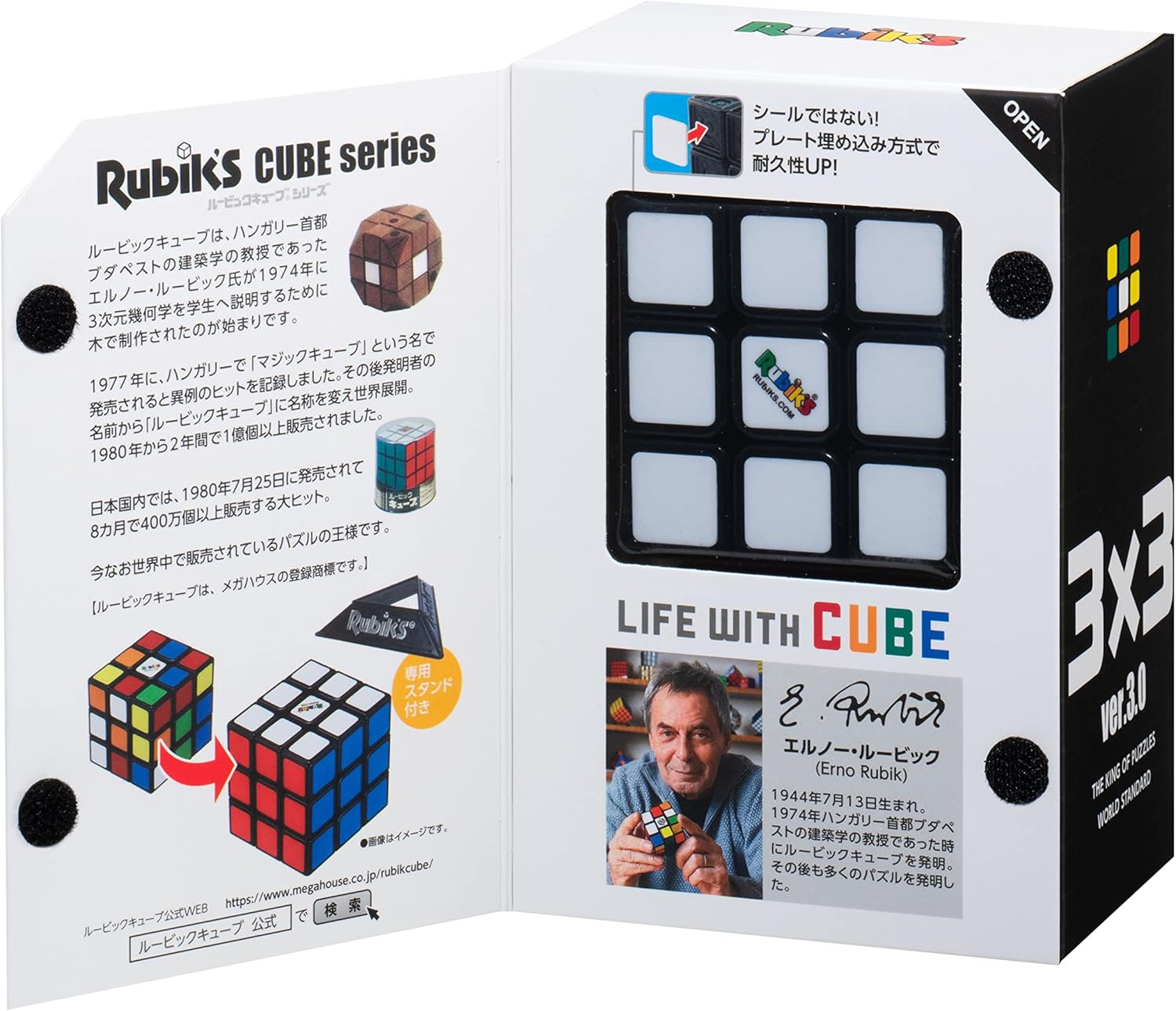 进一步提升了版本 3.0升级的魔方3×3。 【ver.3.0的特征】 ●改良了与中心立方体相邻的立方体形状 ●通过改良主体内部核心,可以更加顺利地转动! 【套装内容】 ●主体…1个 底座:1个 攻略书…1张