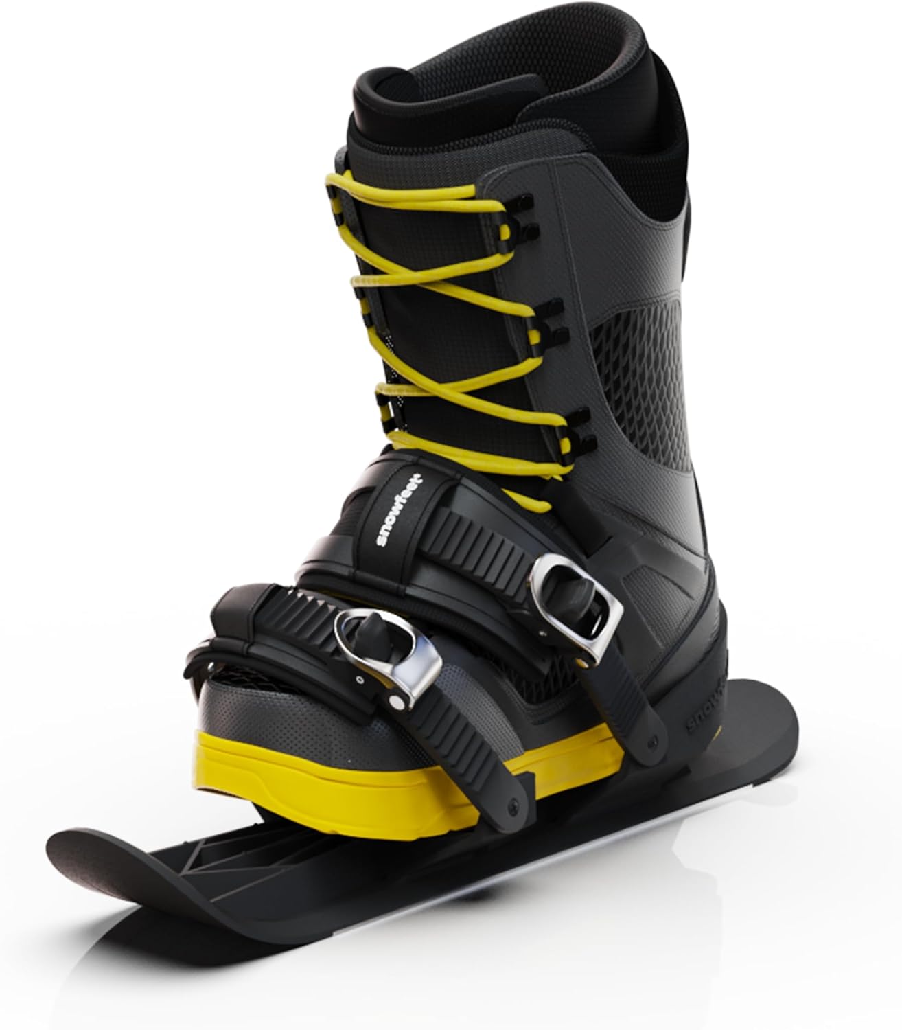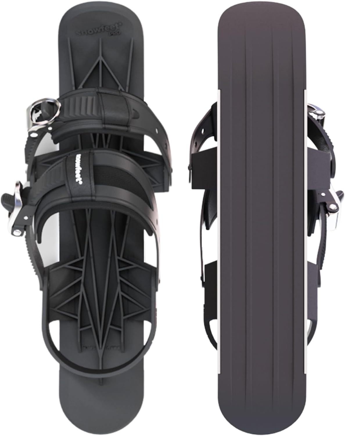 Snowfeet – 新百伦冬季运动 滑雪和滑冰的组合,给斜坡带来滑冰体验。 滑雪鞋附着在冬季鞋和滑雪板靴上。 通过可调节的松紧带,无论什么样的鞋子都可以安装雪地鞋。 均码。 建议以下鞋:US 5-13 / EU37-47。 适合任何包:Snowfeet 非常轻便小巧,可收纳任何背包,携带方便。 无需滑雪靴或其他重昂贵的工具。 雪脚采用耐用性高的轻质玻璃纤维强化材料。 金属制的滑雪边缘可轻松停止。 鞋跟刹车延迟。 适用于坂道 降坂 雪 公园 森林 道 越野滑雪。 只需将雪地鞋与滑雪靴上粘上即可。 许多人兴奋于这个冬天运动。 梦幻世界吧。 一个会成为一个奥运会运动的人。 参加下一个大的冬季运动吧。
