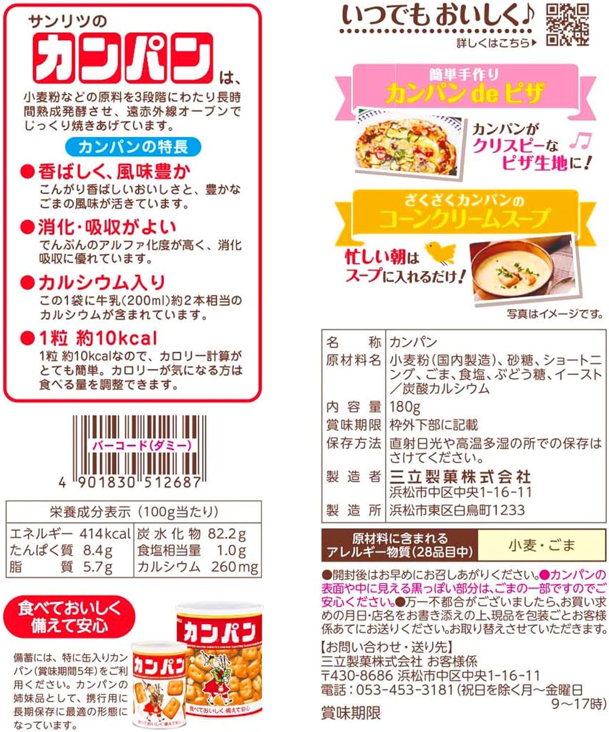 将小麦粉等原料放在3个阶段,长时间熟成发酵,用远红外线烤箱慢慢烤制。 充满浓郁香味的美味和丰富的胡麻的风味。 可作为早餐、轻食或零食使用。 每袋(180克)中含有约2个牛奶(200毫升)的钙。 1粒约10千卡。 ※此商品作为生产日期作为起算的保质期为1年。 请注意,商品送达时残留期间可能会缩短。
