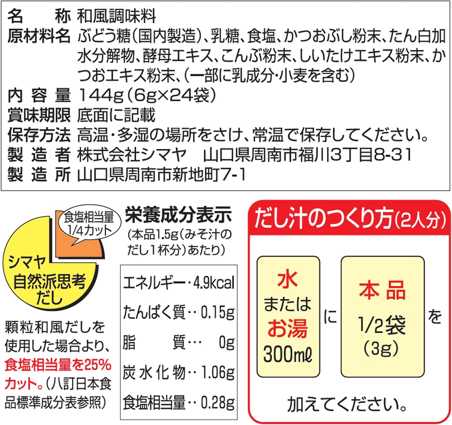 シマヤ 無添加だしあわせ粉末 144g