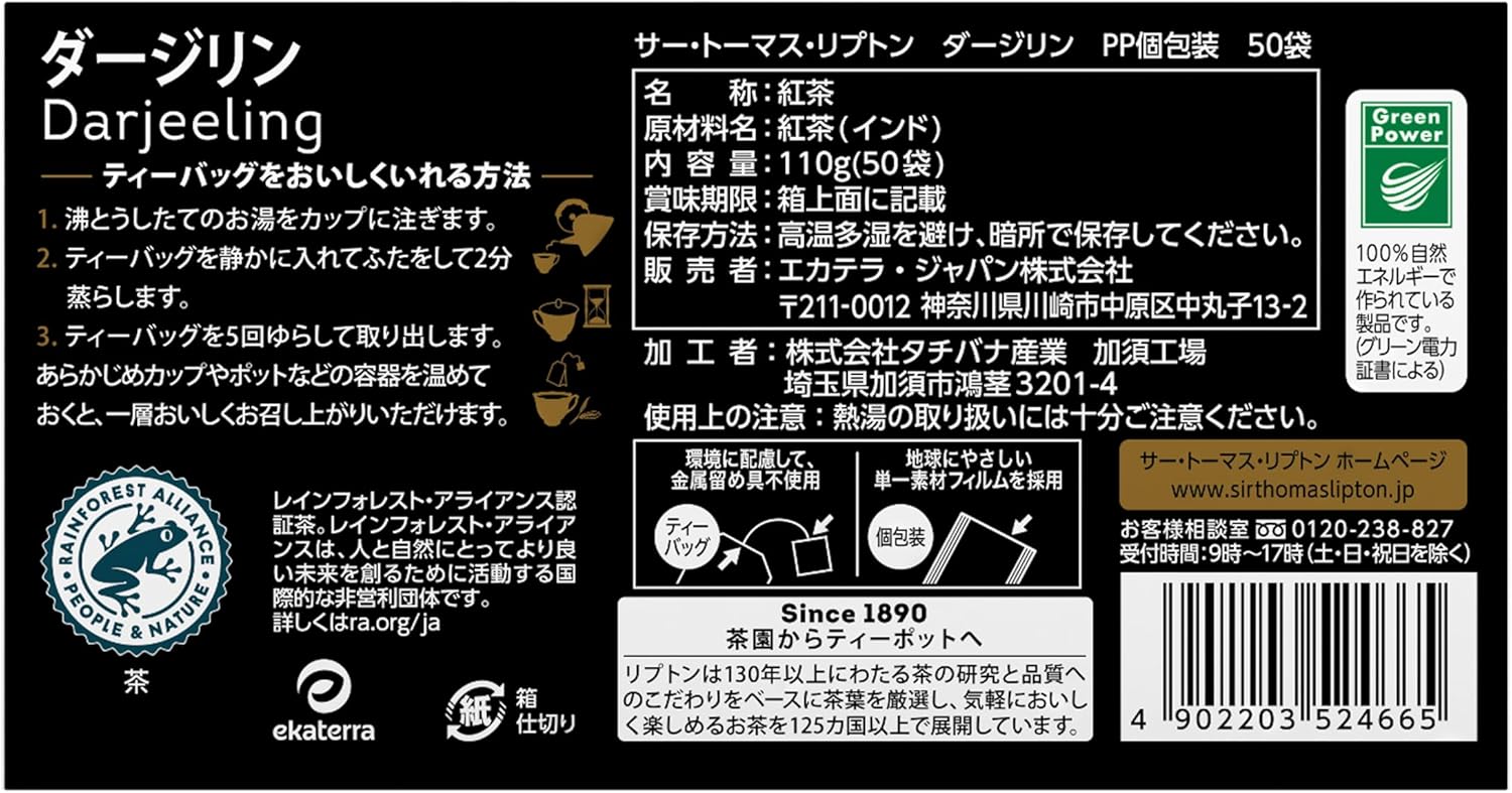 沙托玛斯利普顿 汤姆斯·李普顿 红茶 大吉林 聚丙烯茶包 50袋