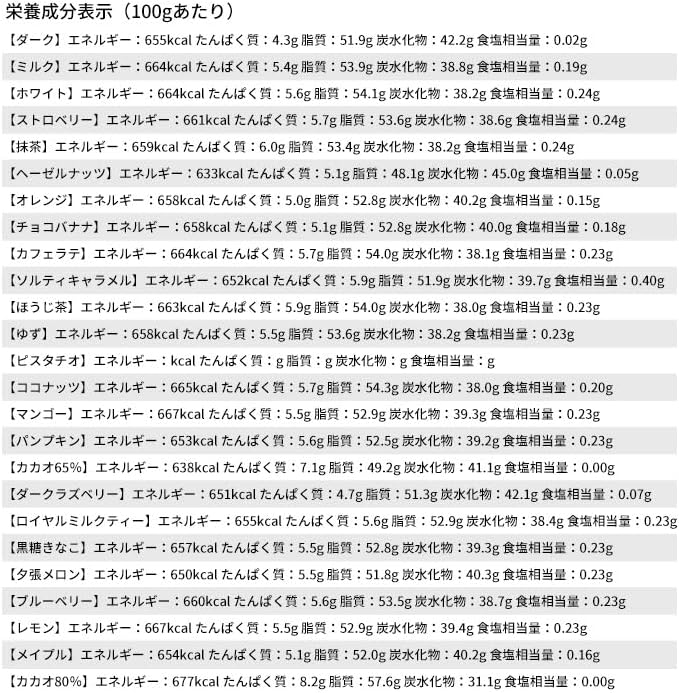 可可猫圣诞节的圣诞倒数日历。 从圣诞节的25天,每天都能享受各种味道巧克力。 25种不同味道,今天是什么味道? 明天是什么? 一天1次享受甜美的美味乐趣,在保持幸福的同时迎接圣诞节吧! 【25种】深蓝、牛奶、白色、草莓、抹茶、榛果、橙、巧克力香蕉、咖啡拿铁、山梨糖醇、焙茶、柚子、桃子、椰子、芒果、南瓜、可可65%、黑莓、皇家奶茶、黑糖、黄豆、黄糖、夕张蜜瓜、蓝莓、柠檬、枫木、可可 80%