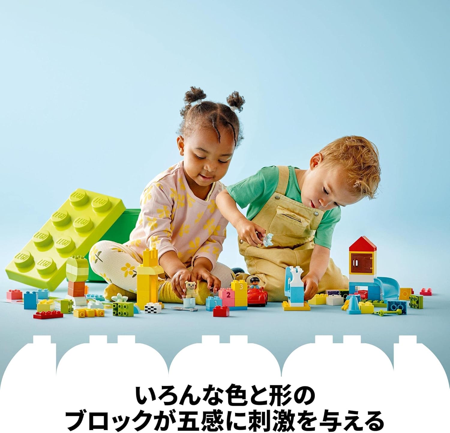商品介绍 丰富多彩的杜邦积木。 包含人偶、狗、车、屋顶、窗户、花、旗帜、滑梯、1~3数字的积木等。 这款玩具套装能够让孩子发挥想象力,轻松玩耍。 可以根据孩子的成长进行选择。 安全警告 LEGO 乐高 Duplo 得宝系列以外的产品含有小零件。 由于有误食的危险,请不要在4岁以下的孩子玩耍。