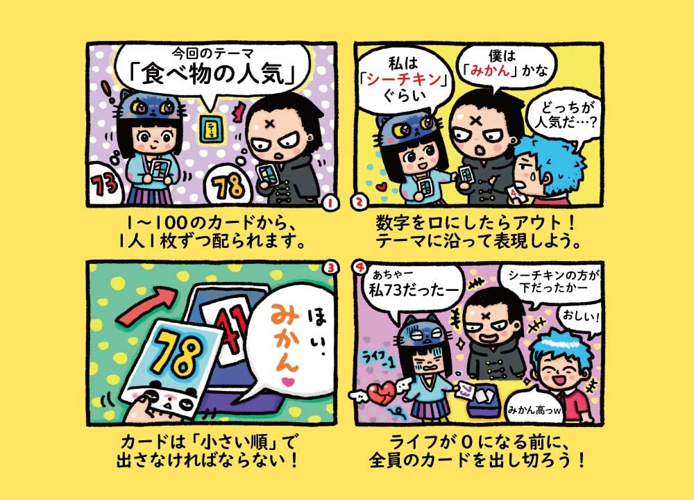在价值观的偏移上非常笑。 "ito "是一款会话欢乐的合作派对游戏。 每位1~100的卡片分别分配1张,将"数字放入口后立刻输出! "在限制中, 大家一起按照主题来表现自己的卡片数字。 协力,将卡片按出一个小顺序,将全部一个卡片全部合作的"Kumonot"、 在会话中找到100成一对成对的协助和反切的"Akette", 可以享受不同的2种玩法。 这是一款派对游戏,一款让人不禁言而喻,一款在价值观的偏差上令人兴奋的派对游戏。 游戏仅能与主题相遇,因此即使是不熟悉游戏的人也可以使用。 游戏人数:2~10人 游戏时间:30分钟 适合年龄:8岁以上。 游戏设计:326 插图:326(南卡姆罗) [套装内容] 号码卡100张、主题卡50张、生活卡2张、黑白贴纸1张、玩法说明书2张 (由Amazon.co.jp提供)