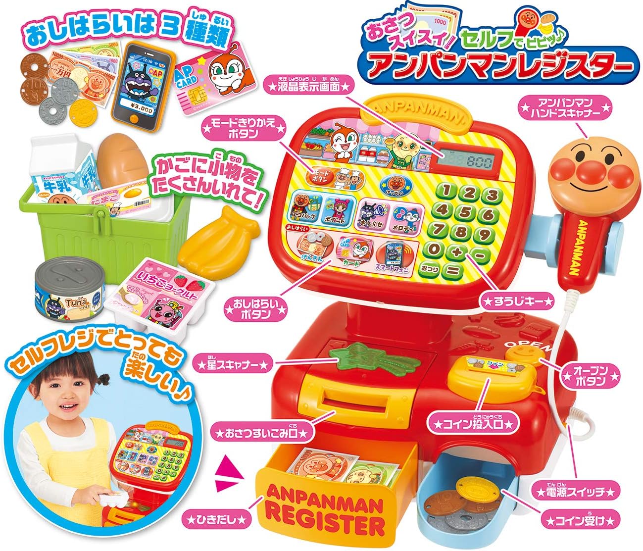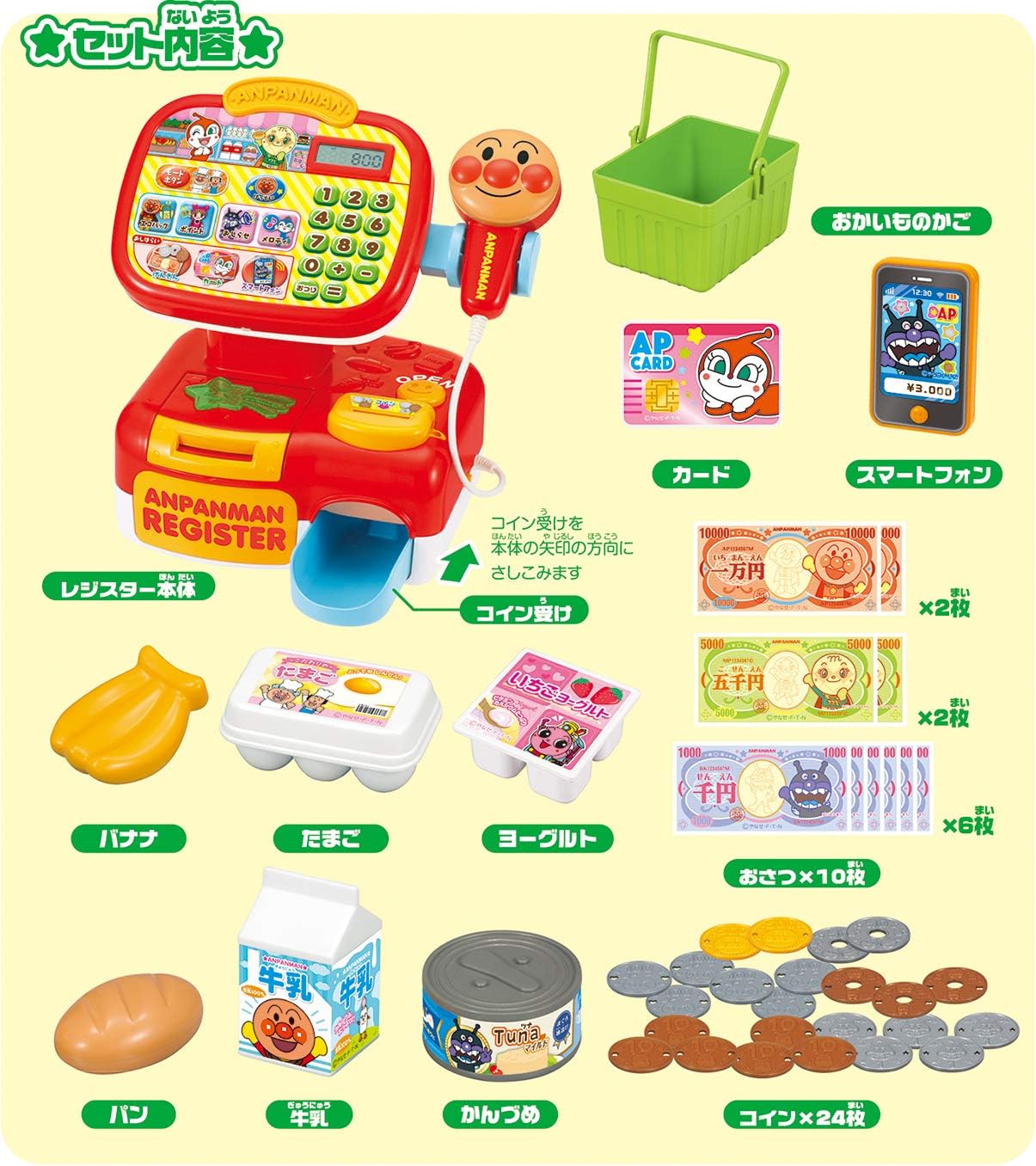 可以尽情玩耍愉快地进行学习的面包超人Selfrig! 省钱放入,硬币也能顺利取出,可以享受真正的收银乐趣♪扫描商品方法2个。 可使用面包超人的手持扫描器和星形非接触传感器进行扫描。 价格的读数、语音、音乐旋律也重质,使扮演游戏更加有趣。 从现金、卡、智能手机中选择,有语音和旋律的功能! 除了计算器功能的"关东模式"、"数字模式"、"计算问题,还搭载了"烟雾模式",此次还搭载了"咬豆模式"! 可以和面包超人一起放入的钱,从1.5岁到4岁的孩子都可以广泛地玩耍。 [套装内容]主体、硬币包、购物篮、智能手机、卡片、纸币10张、硬币24张、鸡蛋、簪子、酸奶、面包、香蕉、牛奶、使用说明书 (由Amazon.co.jp提供)