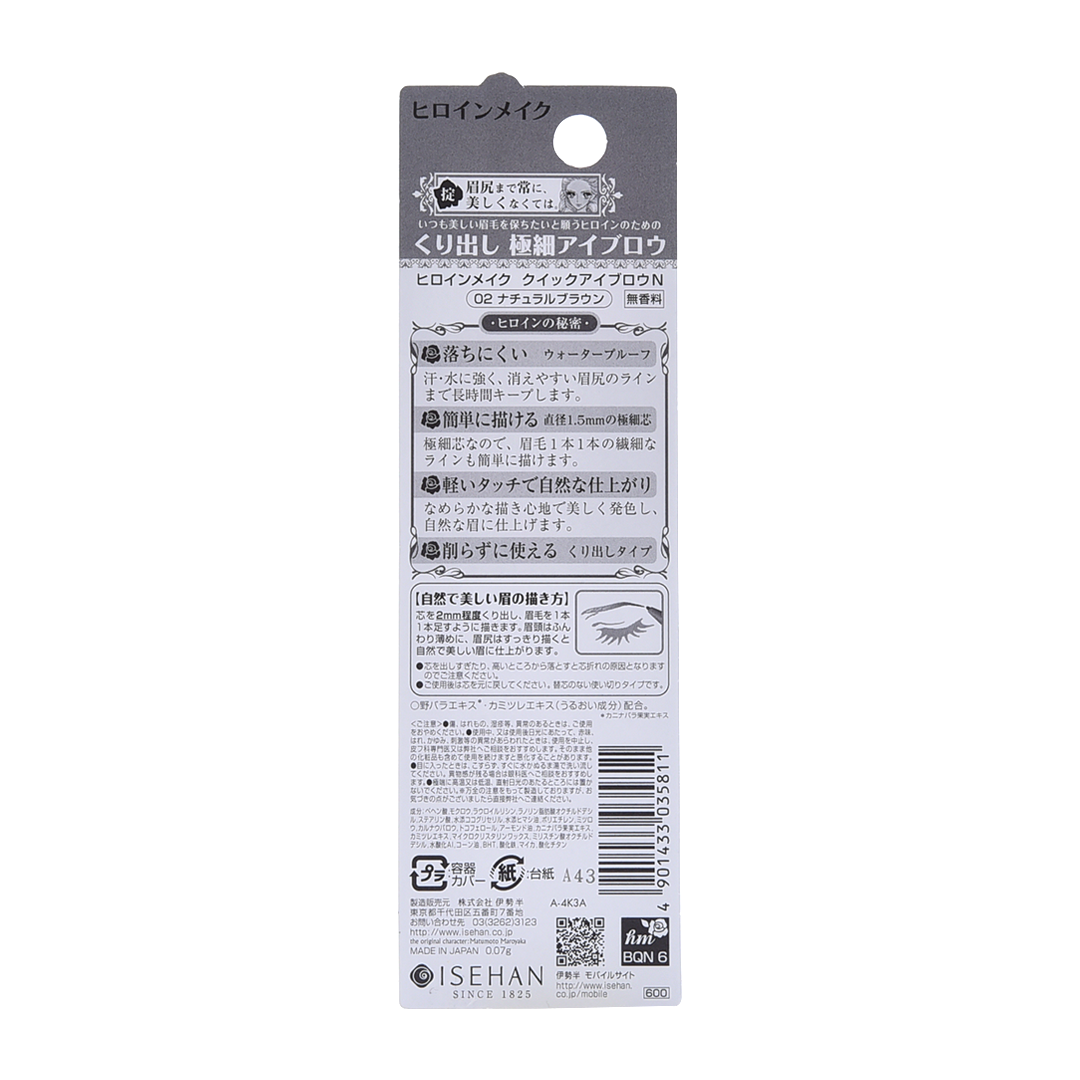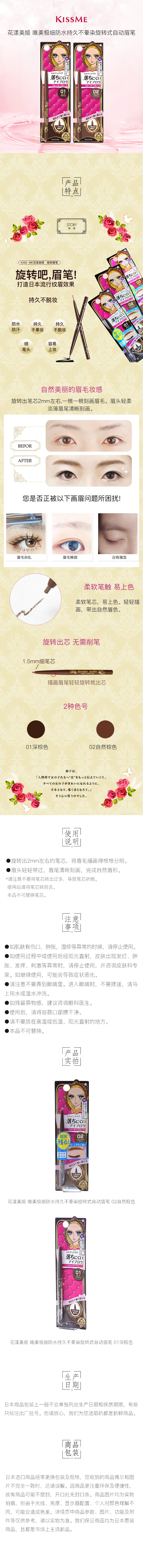 KISS ME 奇士美||极细防水持久不晕染旋转式自动眉笔||02自然棕色