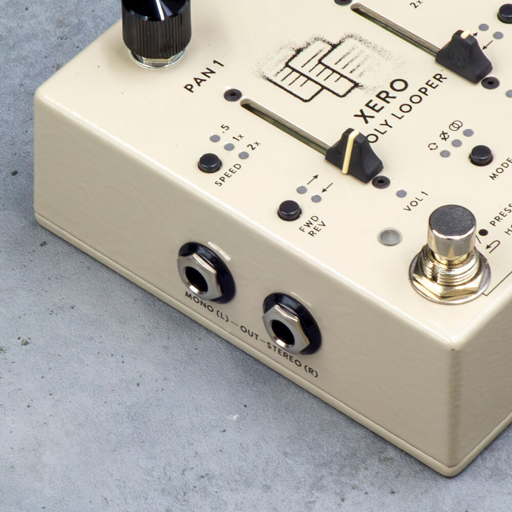 Xero Polylooper は、トゥルーバイパス方式のデュアルチャンネルルーパーです。各チャネルが独立して制御でき、ステレオパン、可変再生速度、リバース機能、3 種類のループモード、直感的なストンプ操作などの機能を搭載した、演奏、アイデア作り、ステージ上でのテクスチャを構築するのに強力な武器になるルーパーです。