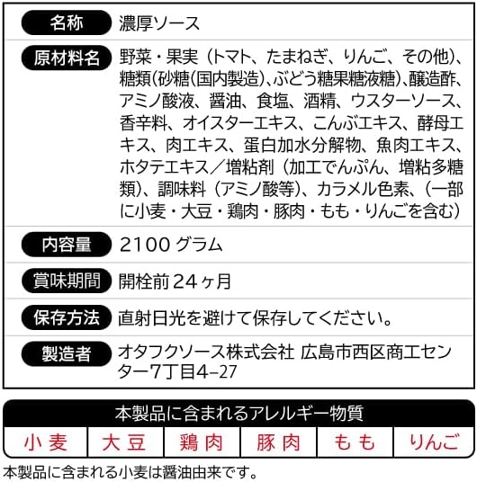 使用大量蔬菜和果实,稍微有一点的美味,可以很好地搭配章鱼烧。 用于章鱼烧的酱汁。 与您喜欢的酱料相比,颜色浓淡,涂在章鱼烧上时也十分美观。 1200克章鱼烧40-50人份,2.1千克的话,70-80人份