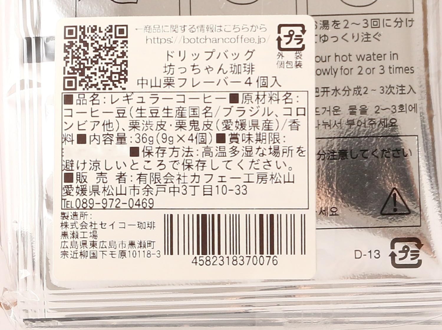 这是一款将爱媛隐藏的名产"中山栗"的鬼皮、涩皮和咖啡混合而成的咖啡。 请尽情享受甜美栗香和咖啡的口琴。 可作为纪念品,也可以转换心情。 独立包装的滴滤袋类型。 自家焙煎 小宝贝咖啡可尽情享受美味的一段时间,从精选生豆订单开始,发送最美味状态。