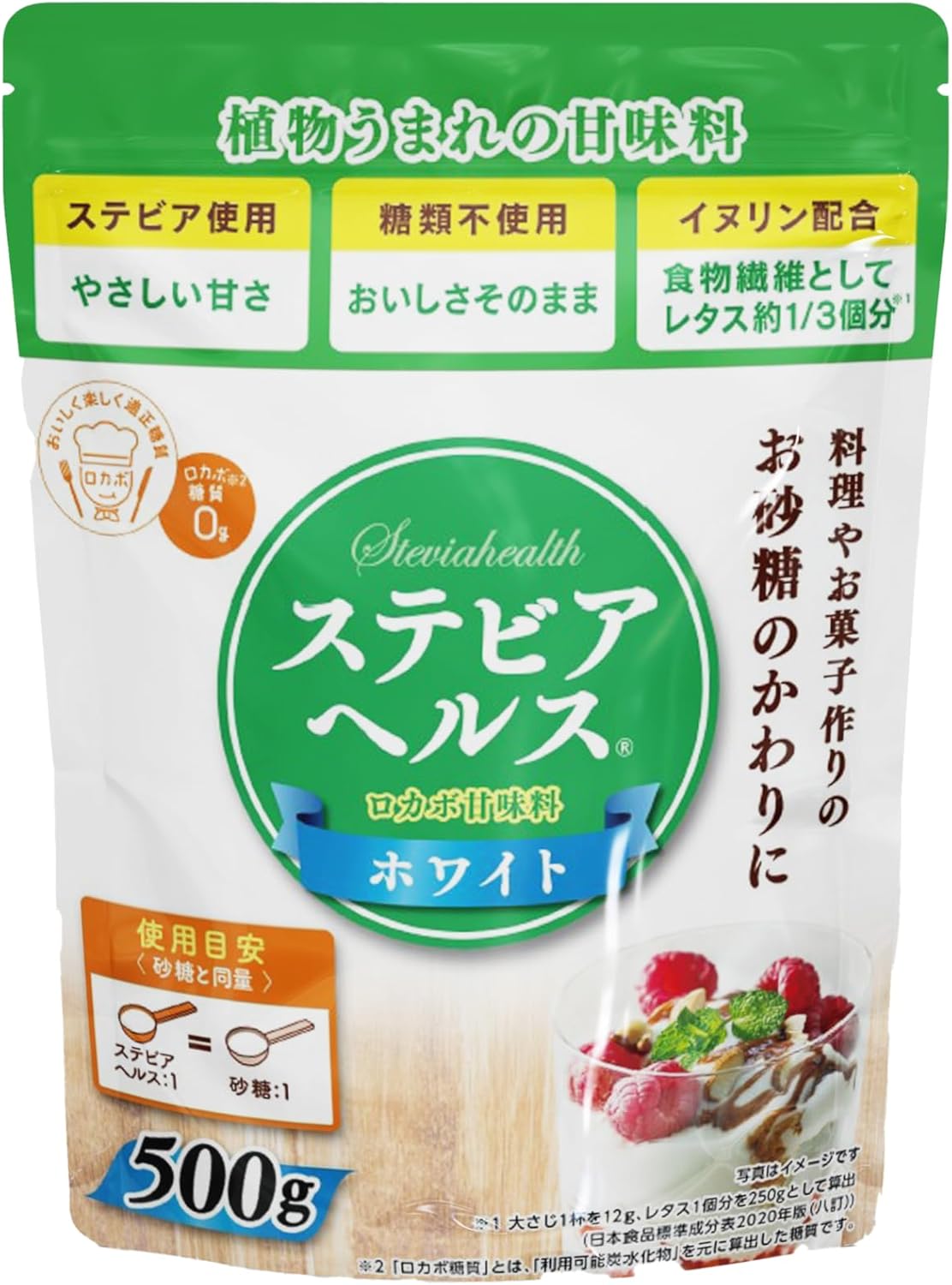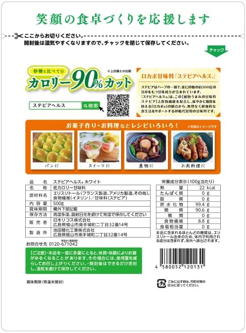 添加植物甜味剂甜菊和食物纤维茴香,不使用糖类100%植物的砂糖替代甜味剂。 通过独特的配方技术,实现了接近砂糖的自然甜味。 不会妨碍材质的味道,因为是白色粉末制品,所以可以广泛用于制作点心、饮料、颜色的菜肴等。 推荐一般社团法人 食品、乐、健康协会的罗卡沃认证商品。 超值的大容量款式。 原材料:赤藓醇(法国制造、美国生产、其他)、食物纤维/甜味剂(甜菊)