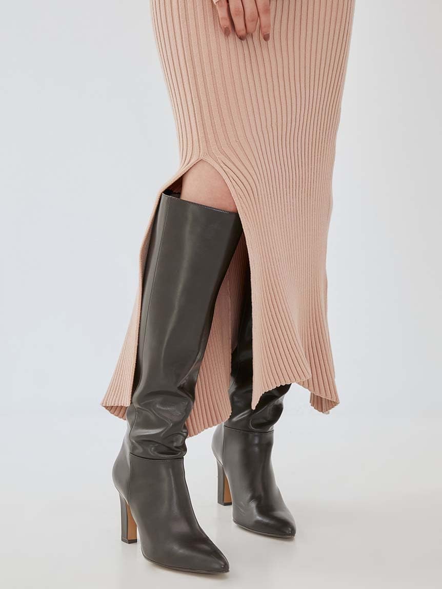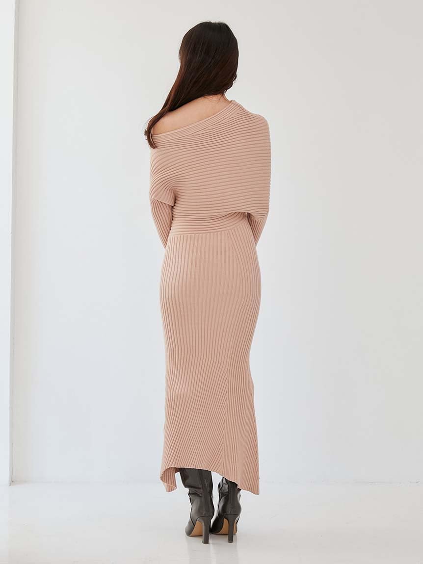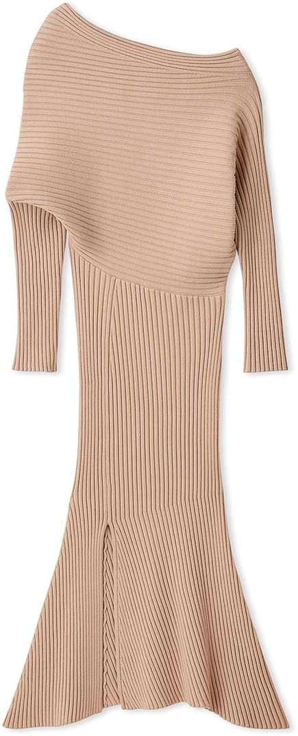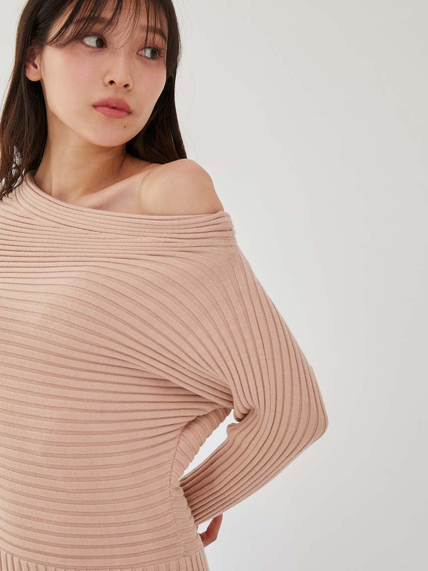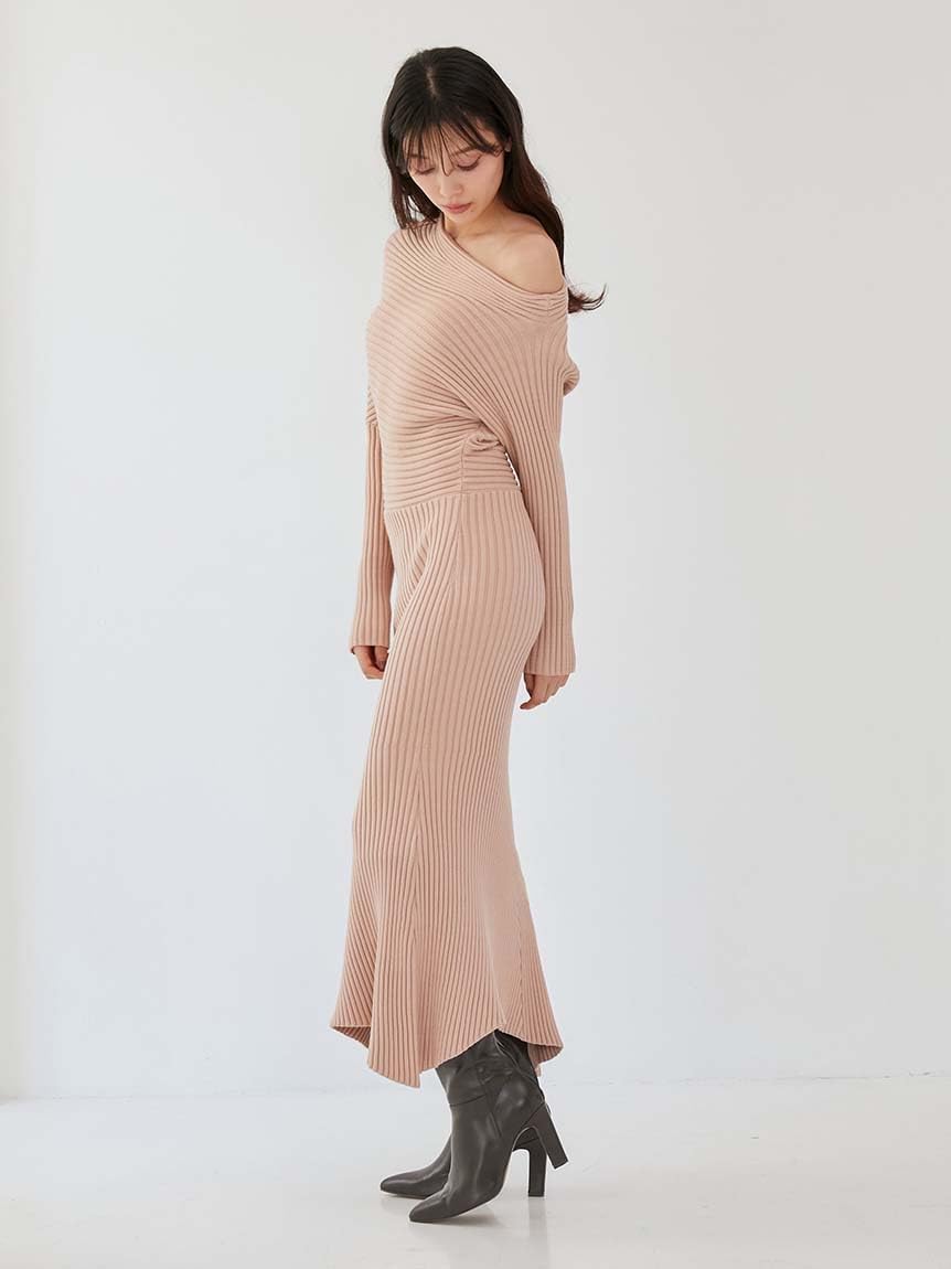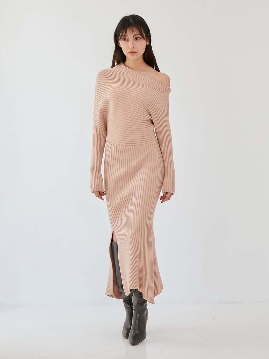 [露肩加上不对称设计的显瘦针织连衣裙] [Design/Styling] 斜的不规则罗纹编织,优雅的单肩不对称针织连衣裙引人注目。 上衣部分斜跨,裙子部分纵向,裙子下摆处斜,改变罗纹方向的不对称设计,剪裁出一个肩部的标志轮廓,塑造美丽曲线。 通过罗纹拼接提高腰部位置,美腿效果出众。 虽然是厚实的针织面料,但腋下有悬垂感,演绎出女性休闲的氛围。 裙子部分采用开叉设计,增加了脱俗感,可以享受成熟美丽的风格。 [面料] 包括象牙色、黑色、混合、WEB限定的粉色在内的4种颜色。 【推荐骨骼型】 ■骨骼直筒 ■骨骼自然