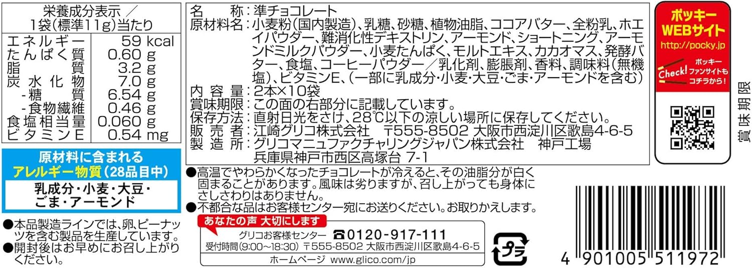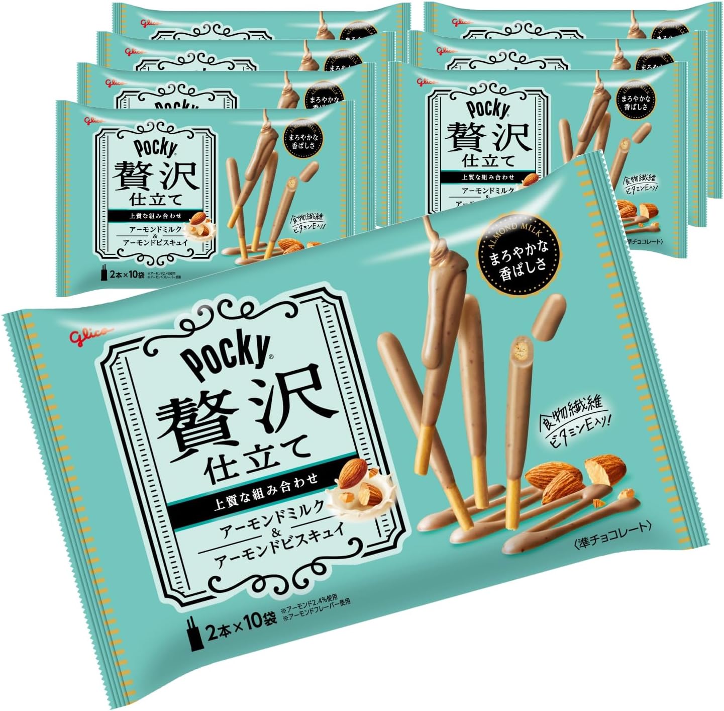 在奢侈地使用的烘焙点心上涂上满满的巧克力,是一款可以享受浓郁口味的甜点棒。 <杏仁牛奶>是坚果香味的饼干和温和的甜杏仁牛奶巧克力的组合。 每袋含2个独立包装类型,可以一点一点吃。 时尚的独立包装使桌子变得华丽。 与以往产品(Poky Pocky 红盒)相比,混合了3倍以上的巧克力,味道丰富。