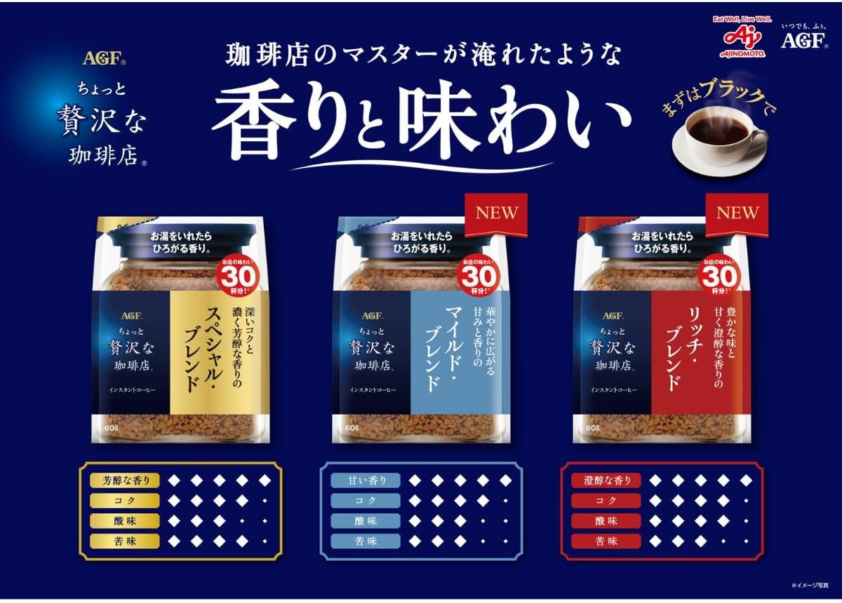 "倒入热水后,奢华黑色。 "稍奢侈的咖啡店"即时咖啡,根据季节和产地特征,将豆子的个性调配。 选择咖啡豆。 将咖啡店的大师所泡出的香味和味道融入到粉末中。 采用速溶式咖啡,无需加热,只需在-40°C下真空干燥制法,无需散发咖啡原本丰富的香味和浓郁的风味,享受冲泡的咖啡味道。 AGF(AGF) "稍奢侈的咖啡店"特别混合袋120克是一款充分利用巴西产最高级别豆型2的特征,浓厚的芳醇香味和浓郁的咖啡店 特别混合袋的替换装。 容易尝试的中容量、袋装替换装(环保包装)类型。 可以用夹子等闭合后放入袋子中。 从咖啡豆的烘焙到填充都在国内工厂进行生产,根据细腻的日本人的味道开发。 将咖啡店的大师所泡出的香味和味道溶于粉末中。 然后倒入热水。 请尽情享受香气的奢华黑色咖啡。 AGF 的替换袋型是经一次性咖啡认证的省资源容器。