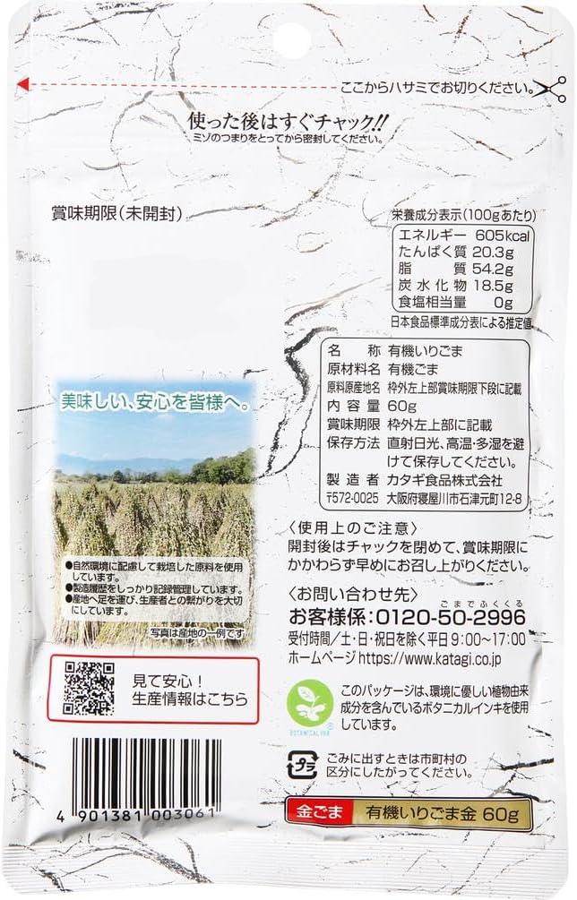 以有机栽培的金芝麻原料为傲的直火烘焙来烤出香甜的太阳恩惠的自然食品。 有机栽培是指不使用禁止的农药和化学合成的肥料,由动植物的堆积肥等土造培养农作物。 本产品是符合日本农林规格规定的有机加工食品标准的产品。