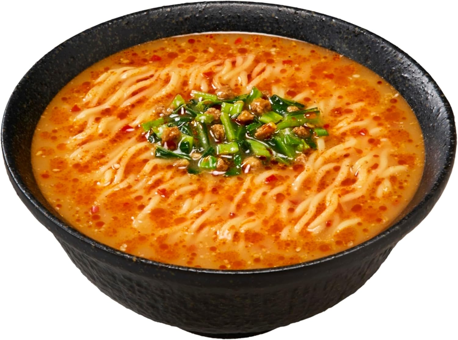小麦香的无油炸中细面,搭配醇厚的辣味和胡麻的浓郁味味增基底花椒的担担担汤。 光滑且韧性良好,清洗舒适的无油炸面。 在红、白味增中,搭配浓厚且有烹饪感的猪骨精华的浓郁味增汤。 配合豆板酱、花椒、山椒、拉油辣味、葱胡麻胡麻的口味。 内含芝麻、粗研磨辣椒。 配菜是青菜,调味鸡肉磨肉、葱。
