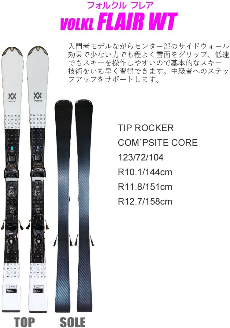 滑雪板 ◆制造商 VOLKL ◆品名 FLAIR WT 侧切 123-72-104 R10.1/144cm R11.8/151cm R12.7/158cm ◇固定器 ◆MARKER vMotion 10 GW Lady 适用于成人滑雪靴 支持抓地步行(也可使用传统阿尔卑斯鞋底) ◆对应鞋底尺寸 260-388mm ◆释放值:3-10 由于摄影状况和使用的显示器环境不同,实际商品的颜色可能与图片略有不同。