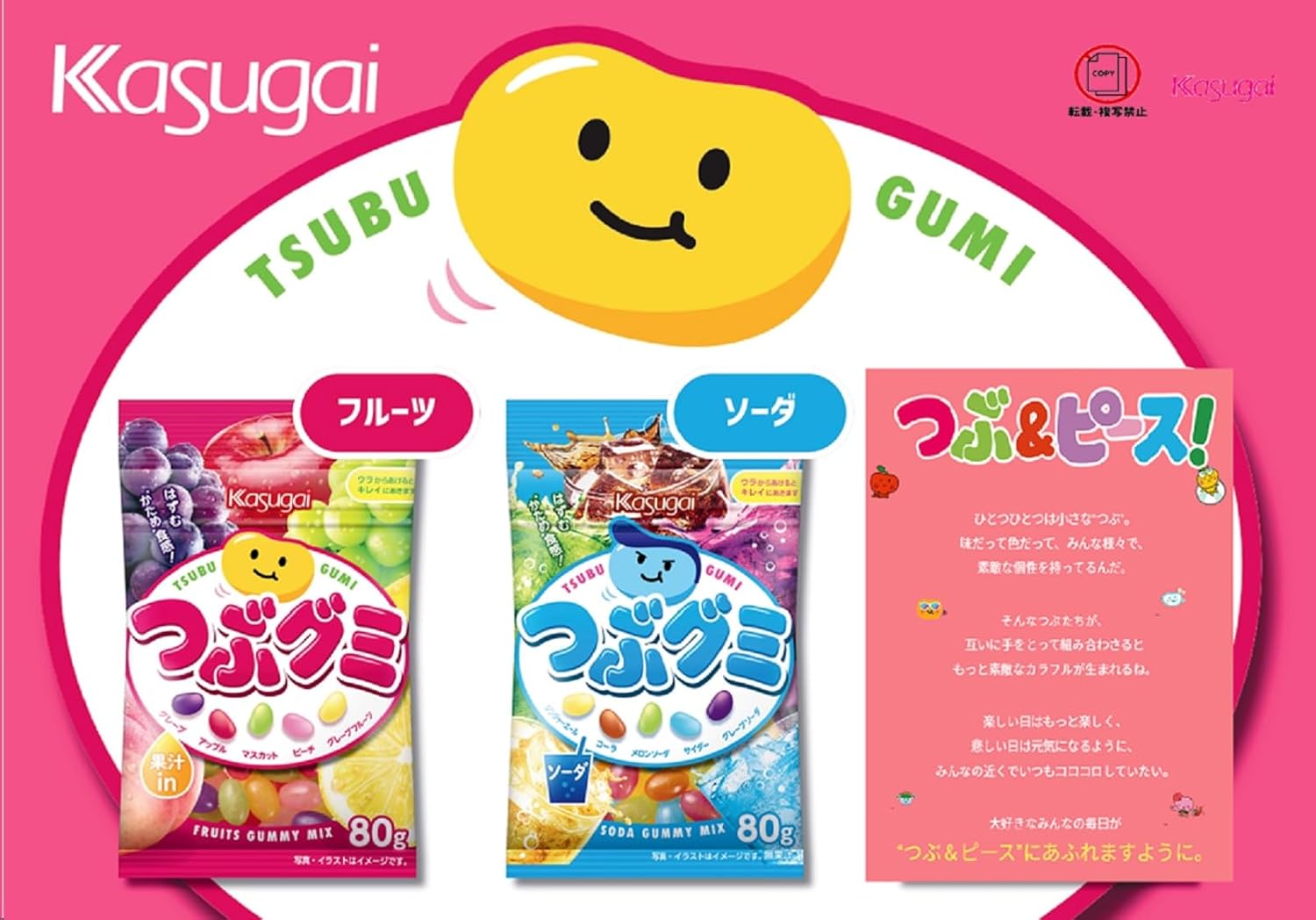 5种水果口味(葡萄、苹果、麝香葡萄、桃子、葡萄柚),通过绝妙平衡来满足小腹。 弹性适中,具有硬度的口感,可以一直吃的混合糖。 巴黎! "喵! "会变得更好。 请一定享受不黏腻的光滑触感和容易抓握的圆形软糖。