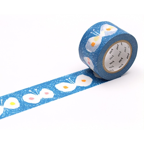 【现货】カモ井 マスキングテープ mt 30mm×10m 蓝色手绘蝴蝶