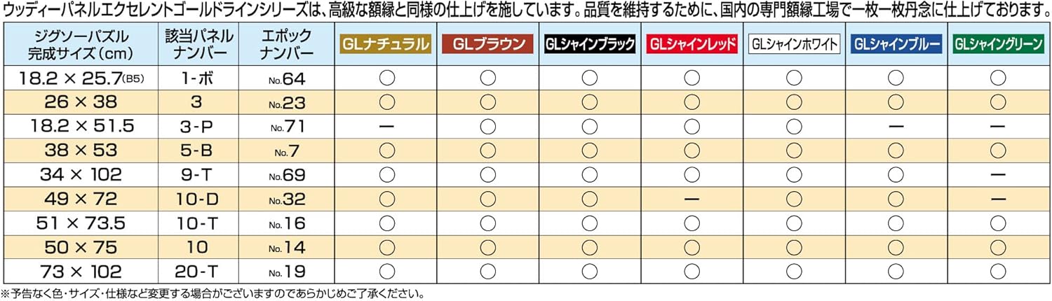 豪华的金模样的拼图专用面板。 我们准备了沉稳的色调基本颜色和鲜艳的亮色。 有光泽的黑色和金饰,一定会呈现出花纹厚重感。 隔离90%以上的紫外线! Epook公司的"防紫外线面板"是覆盖拼图的透明贴纸使用紫外线吸收剂。 减少紫外线引起的重要作品的褪色。