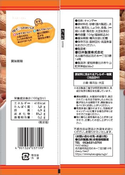 砂糖(日本制造)、糖稀、落花生、酱油、食盐、(部分含有小麦、落花生、大豆)。