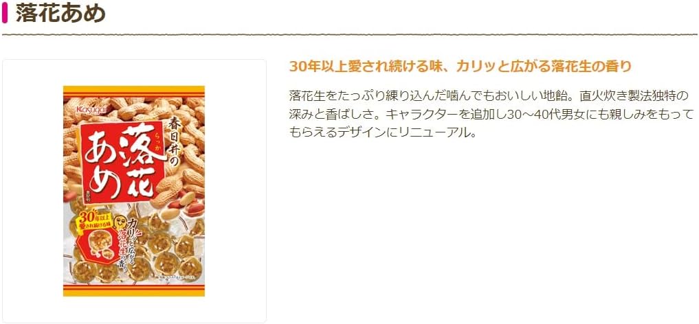 饱含落花生的糖果。 落花生的香型,通过直火烹饪法,具有美味和香气的特点。 即使舔舐也好吃了也很美味的花生的糖果,请务必尝试一下。 请在工作时稍微的气息,外出时陪伴,和家人和朋友一起服用。