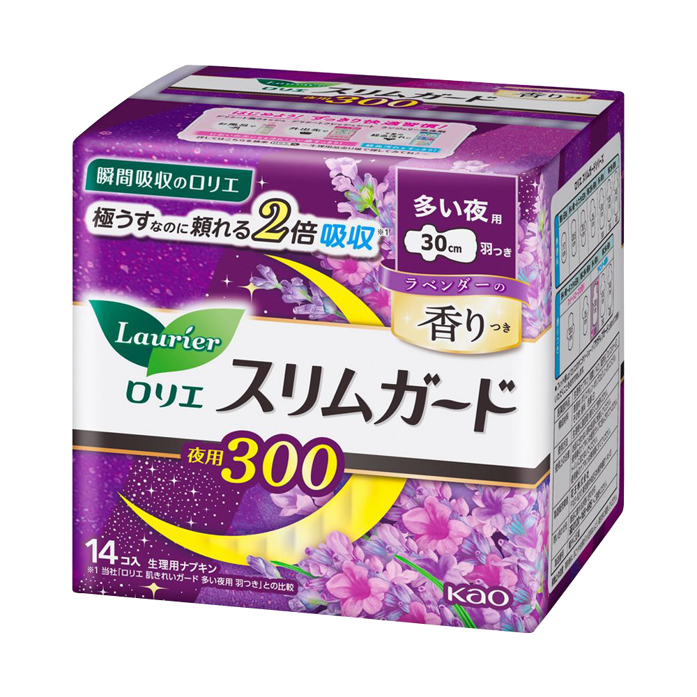 Laurier 乐而雅||薄款瞬吸薰衣草香夜用卫生巾(新旧包装随机发货)||30cm 14片