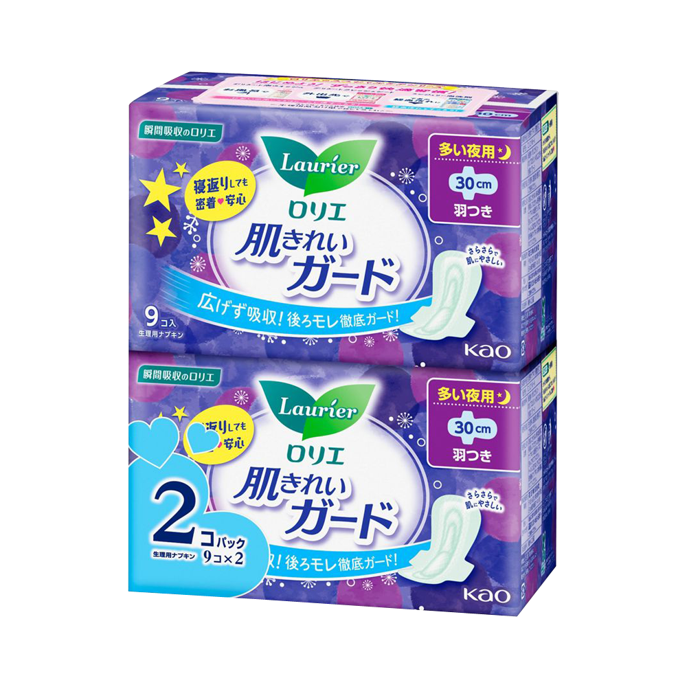 Laurier 乐而雅||呵护肌肤干爽夜用护翼卫生巾(新旧包装随机发货)||30cm 9片×2