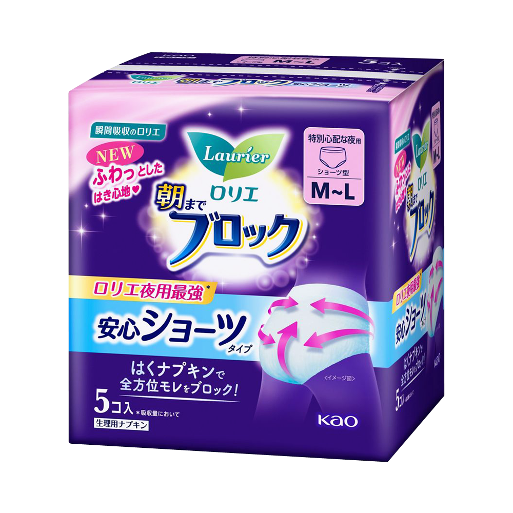 Laurier 乐而雅||纯棉超吸收多量夜用安心裤(新旧包装随机发货)||M~L 5枚