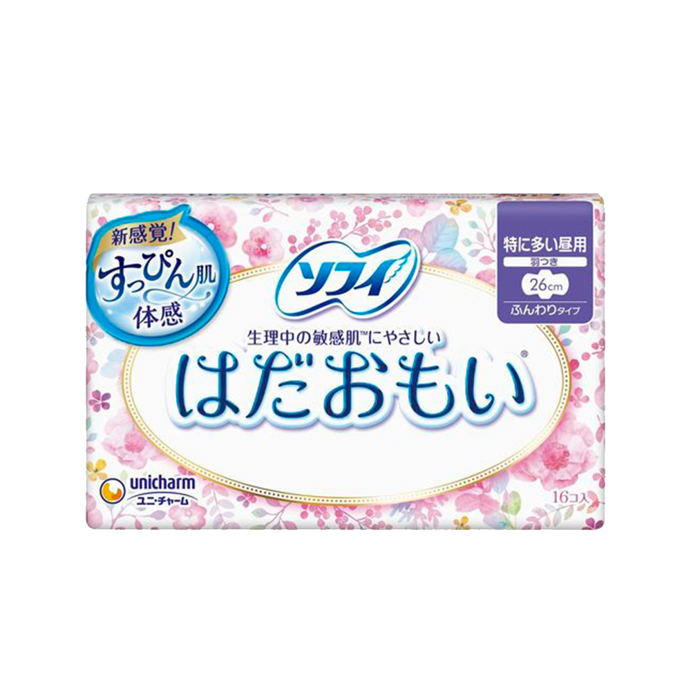 Unicharm 尤妮佳||苏菲 温柔肌柔肤卫生巾||带护翼 量多日用 26cm 16片