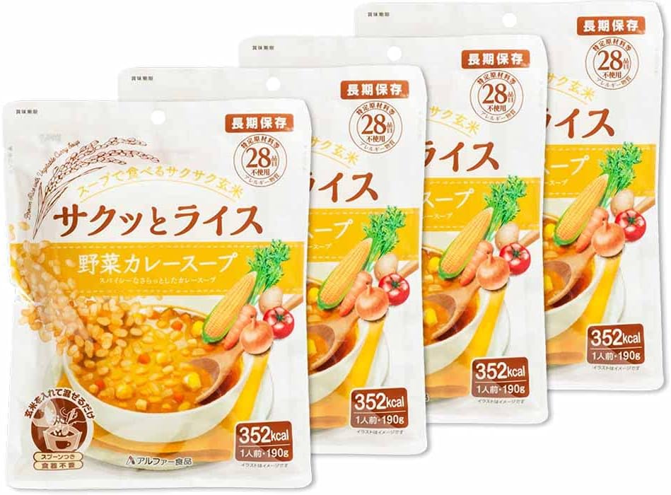 Alfa 食品 酥脆米饭 蔬菜咖喱汤190克×4个【紧急食品】【常备用】【长期保存】【无需水】